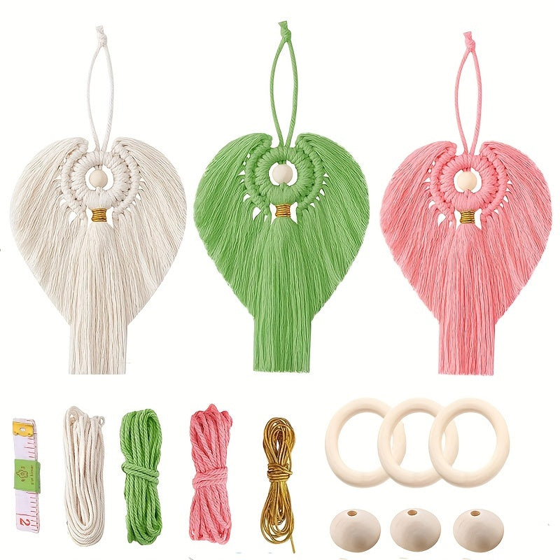 DIY Macrame Angel Kits - 3 Set Handcraft Wall Hanging Decor with Nylon Thread - All Seasons Crafting Kit for Home Decoration, Suitable for Beginners