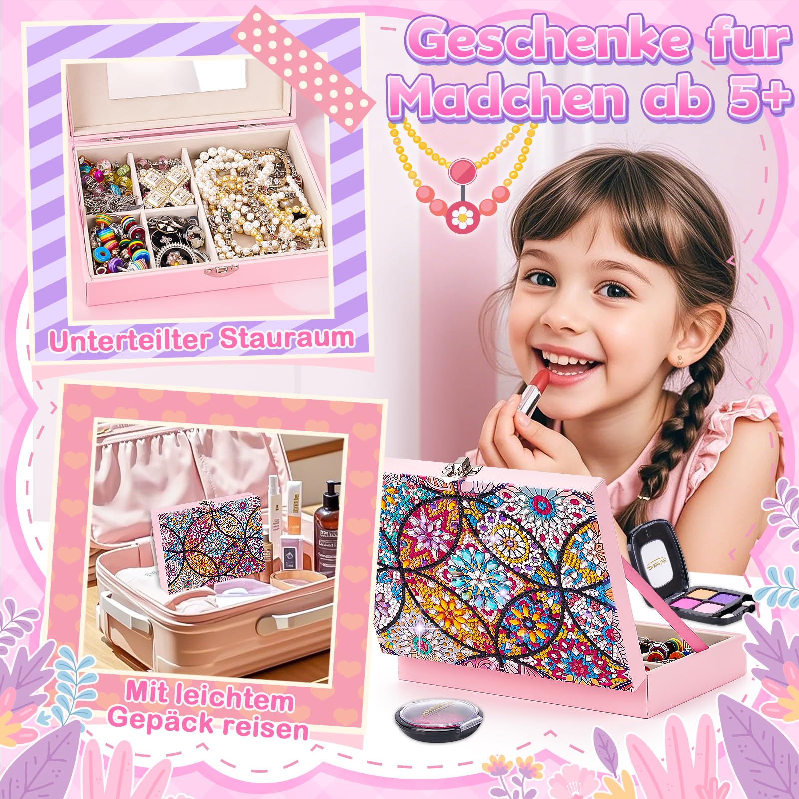 - Simple DIY diamond painting craft kit kids: jewelry box craft girls gift 5-12 years is easy to make yourself. All you have to do is peel off the plastic foil of the diamond picture and engrave the diamond on the corresponding symbol. The removable mirror design ensures practicality, the design with compartments allows for better storage of rings, earrings and necklaces, especially suitable craft set