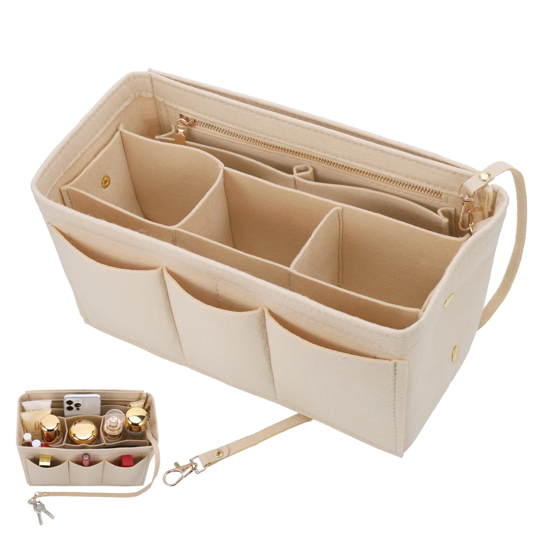 • The metal zippered pocket of the pocket insert organizer provides additional security and storage space for valuables, and the long detachable key ring allows the key to be firmly fixed in the handbag, making the key easy to find and preventing loss