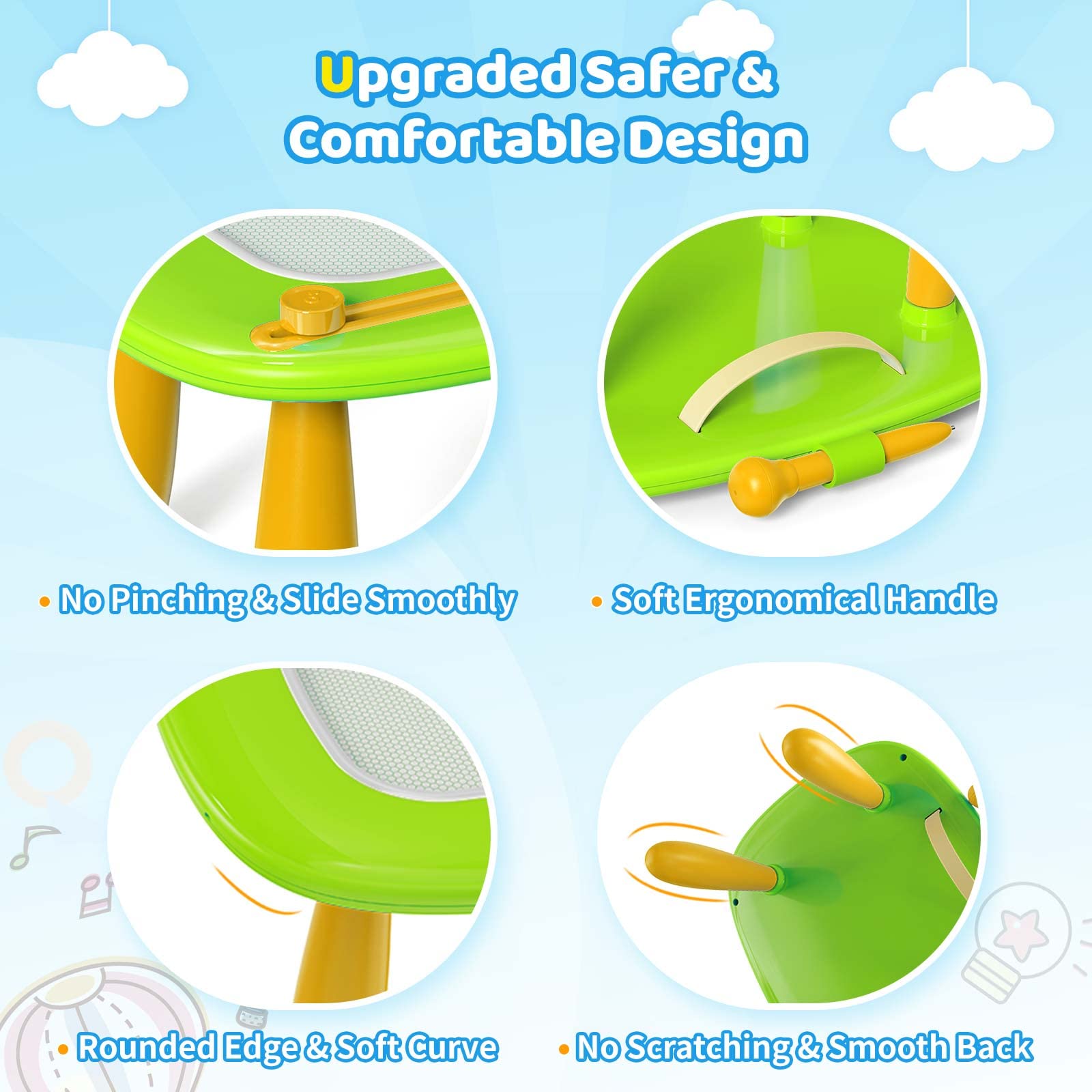 • Sturdy drawing table or doodle board: This drawing board is equipped with a durable screw system and high-quality legs that are designed for intensive use without wobbling or risk of breakage. Plus, the table's legs are easily removable and adjustable to three different heights, making them perfect for your little artist's comfort.