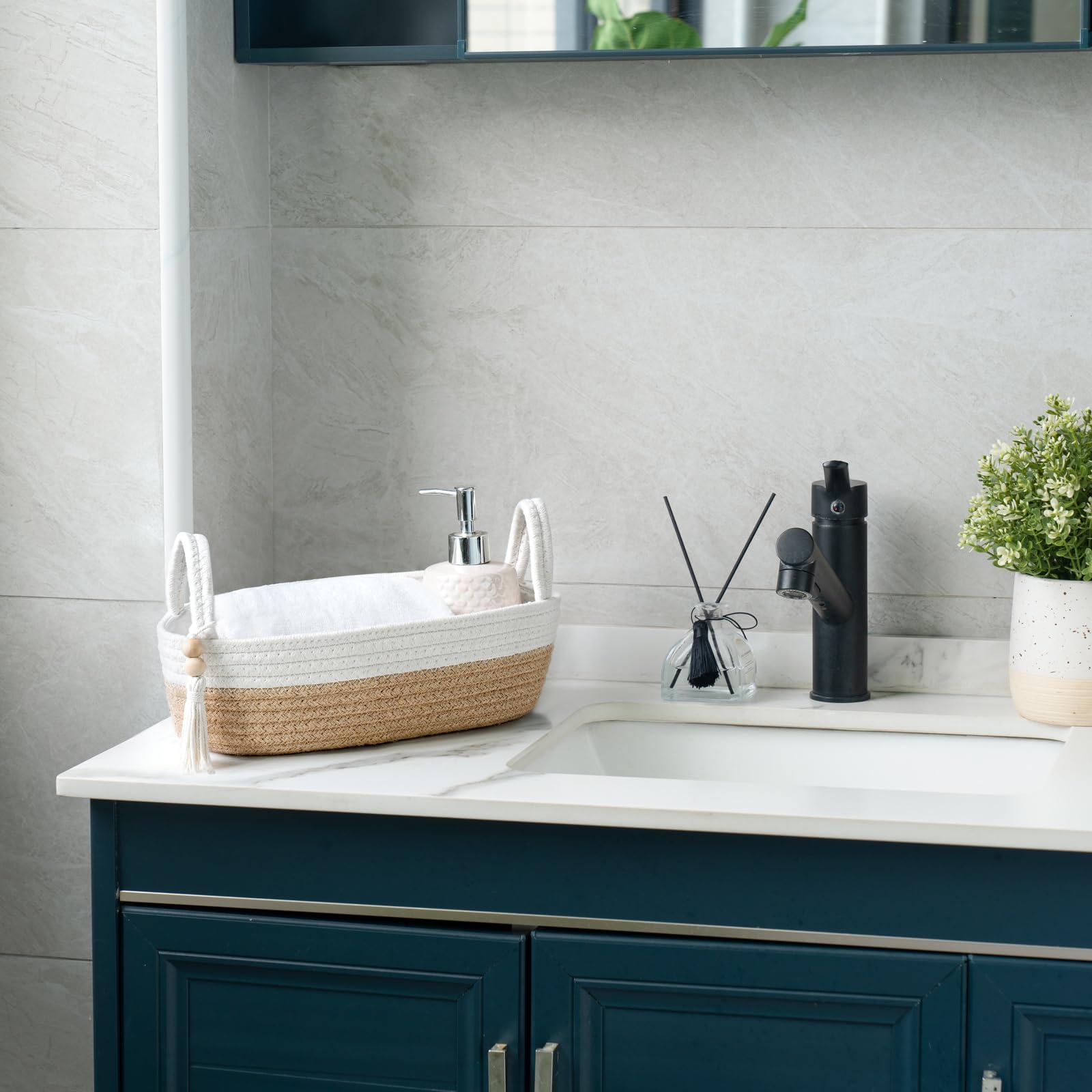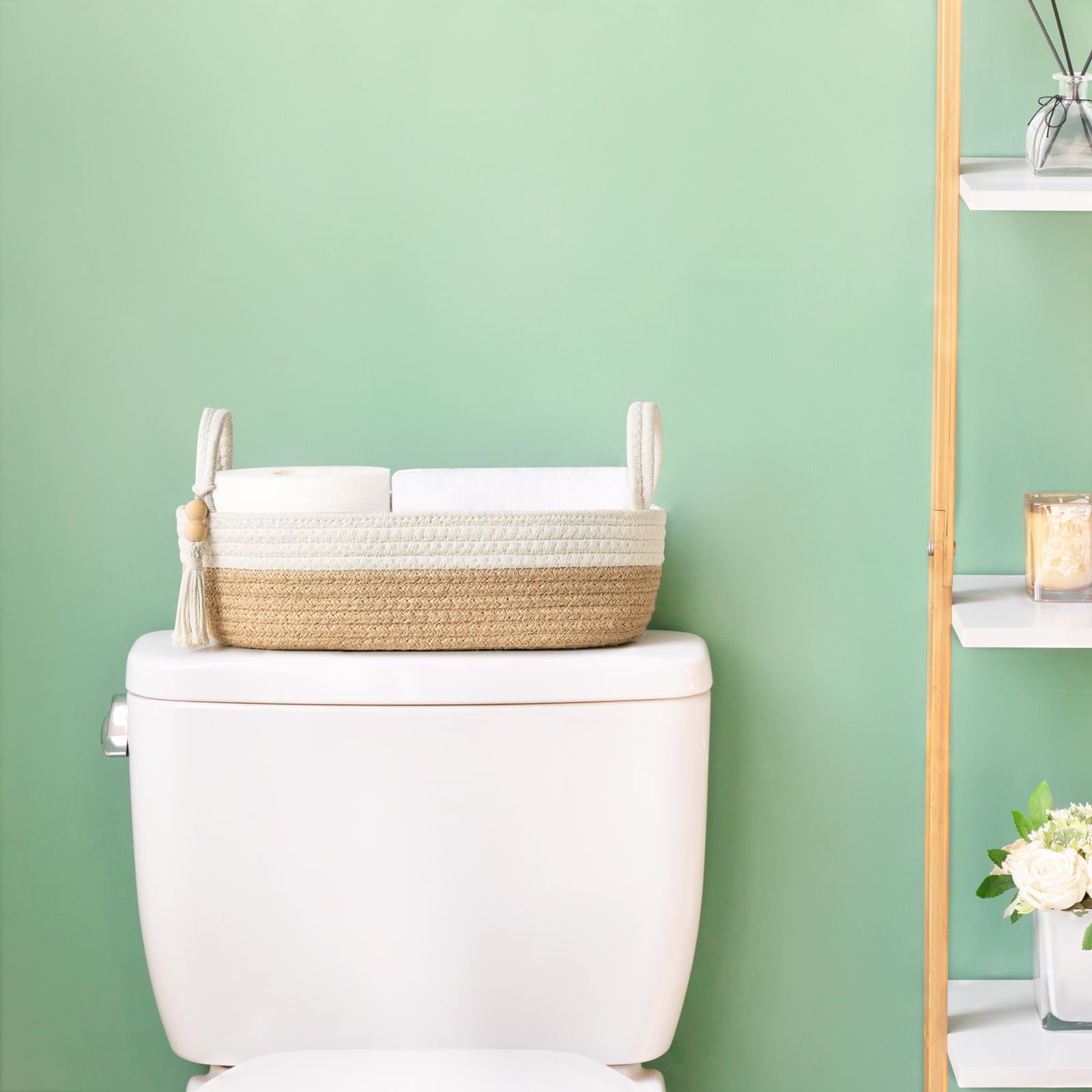 - This braided rope basket can not only be used in your bathroom, it can also be used in the living room, guest room, bedroom, office, etc. Most small things in daily life can be organized in this basket, and it is easy to find them when you need them. Keep the home clean and comfortable, and it is a great addition to your home decor.