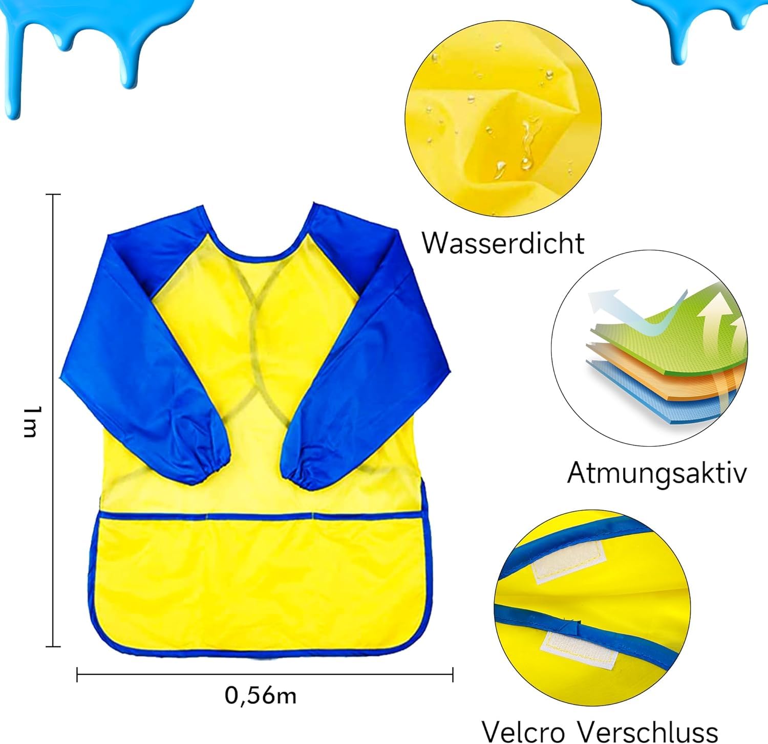 - 53 Finger Painting Set for Children contains 14 colors of washable finger paints in bottles (60ml/2oz each), including classic colors, neon colors and glitter colors, as well as 1 finger paints coloring book, 2 pallets, 6 brushes, 12 sponge stamps, 4 roller sponges, 1 waterproof smock, 12 different sponge brushes and sponge brushes, a complete painting set for toddlers from 3 years.