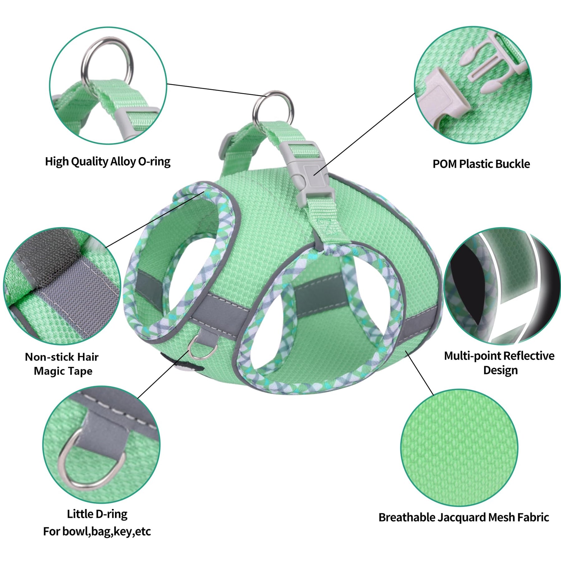 - Atmungsaktives Jacquardgewebe: Das Hundegeschirr besteht aus Jacquardgewebe mit hoher Dichte, atmungsaktiv, dreidimensional, weich und bequem und kann Kauen oder Reißen verhindern. Kleines Hundegeschirr hat eine extrem hohe Haltbarkeit, Zugfestigkeit, Reißfestigkeit und Fusionsbeständigkeit. Darüber hinaus hat das Welpengeschirr die Eigenschaften der Feuchtigkeitsaufnahme und Schweißabsonderung, wodurch Trockenheit entsteht, die den Haustieren ein außergewöhnliches Trageerlebnis bietet.