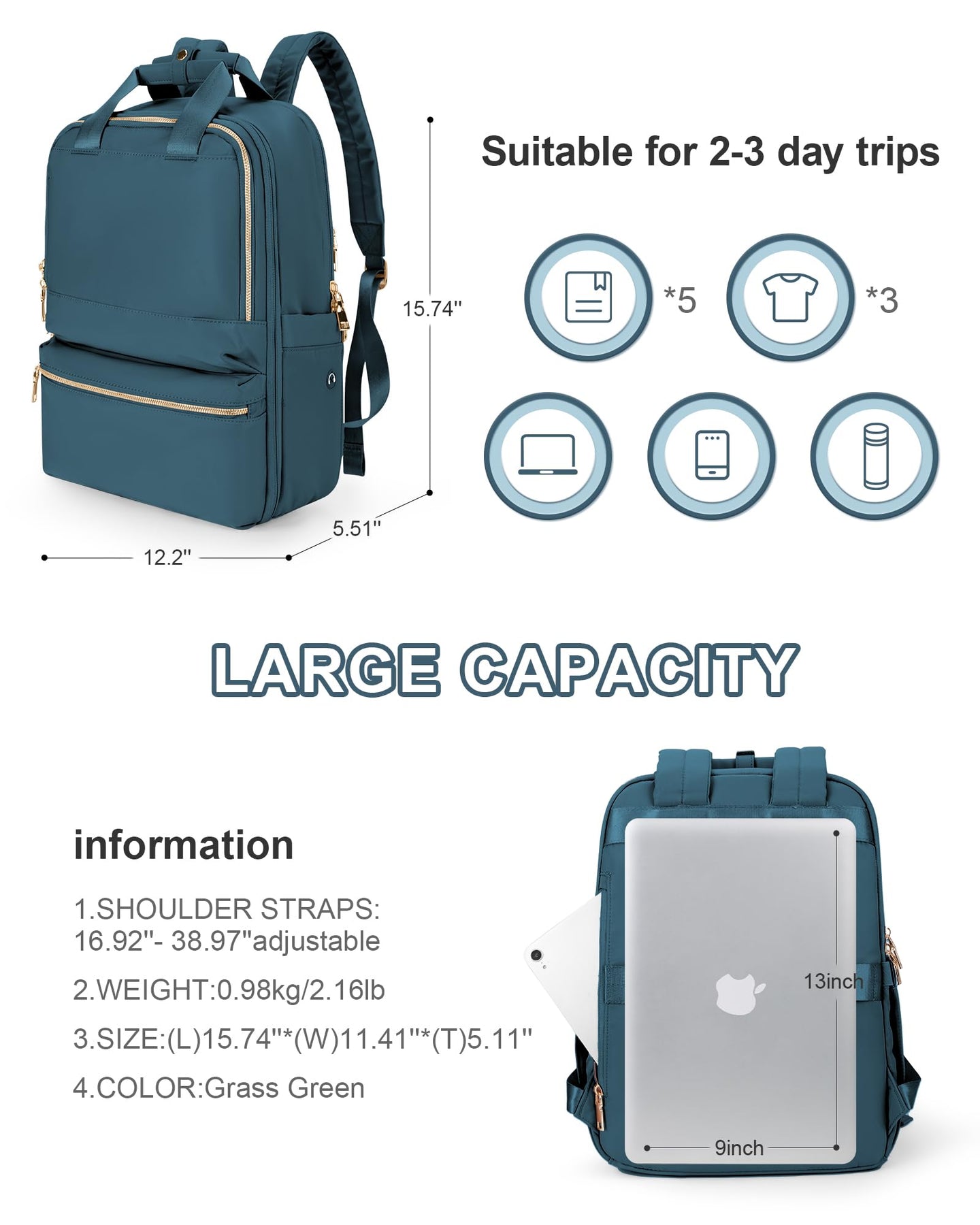 • Großes Fassungsvermögen: Das Hauptfach hat 2 Netztaschen und 1 Gepäckgurt, der mit Klettverschluss und Knöpfen auf 180 Grad aufgeklappt werden kann. Er kann vor dem Aufklappen als Freizeitrucksack und nach dem Aufklappen als Reiserucksack verwendet werden. Er bietet Platz für bis zu 4 Kleidungsstücke, Bücher, Powerpacks usw. Geeignet für 2-3 Tagesausflüge.