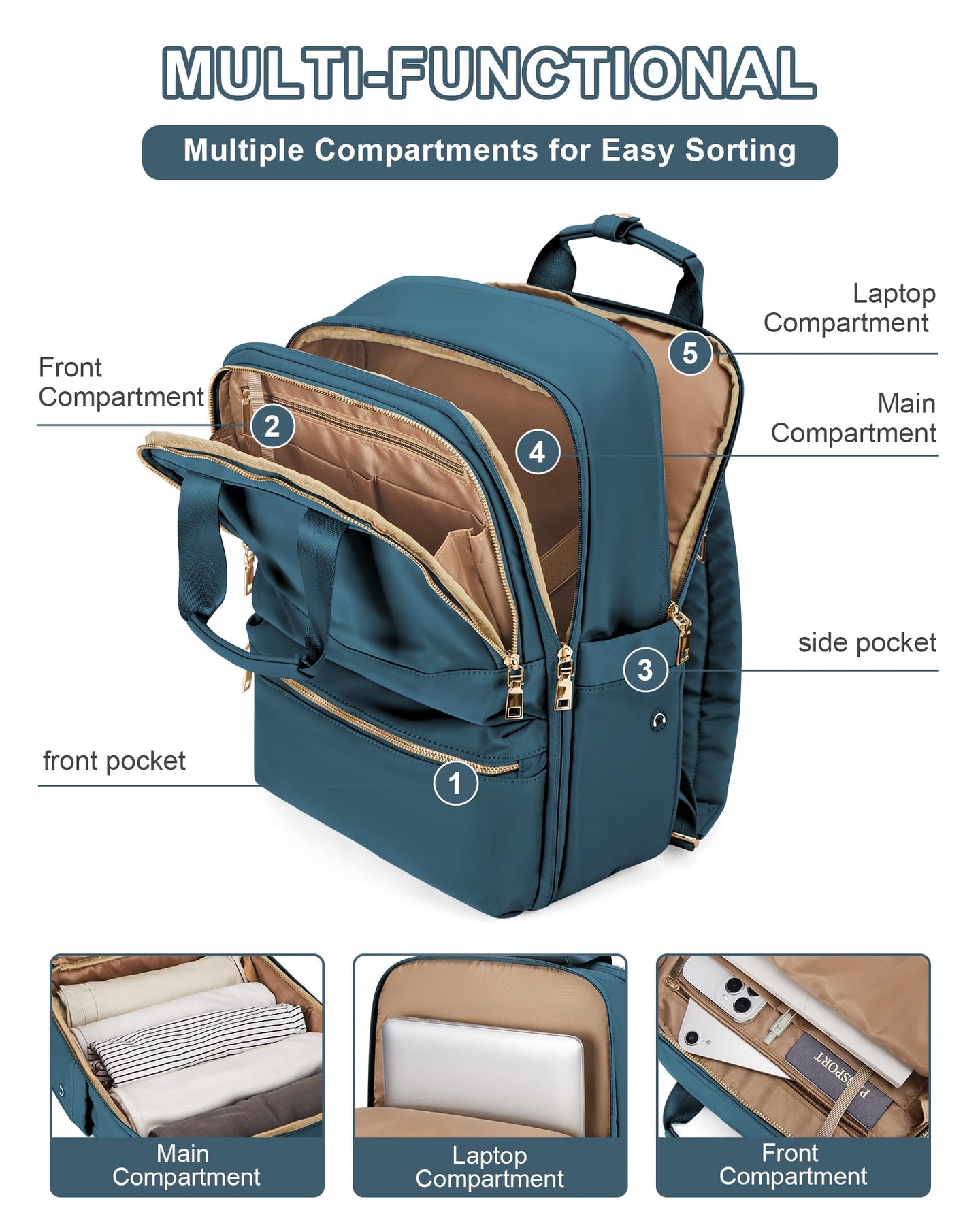 • Der Laptop-Reiserucksack hat 1 Frontfach, 1 Fronttasche mit Reißverschluss, 1 Hauptfach, 1 separates Laptopfach, 2 Beuteltaschen mit elastischen Bändern (eine davon mit Kopfhöreröffnung) und 4 versteckte Rückentaschen. Mit dieser Freizeittasche sind Ihre Habseligkeiten besser organisiert und kategorisiert.