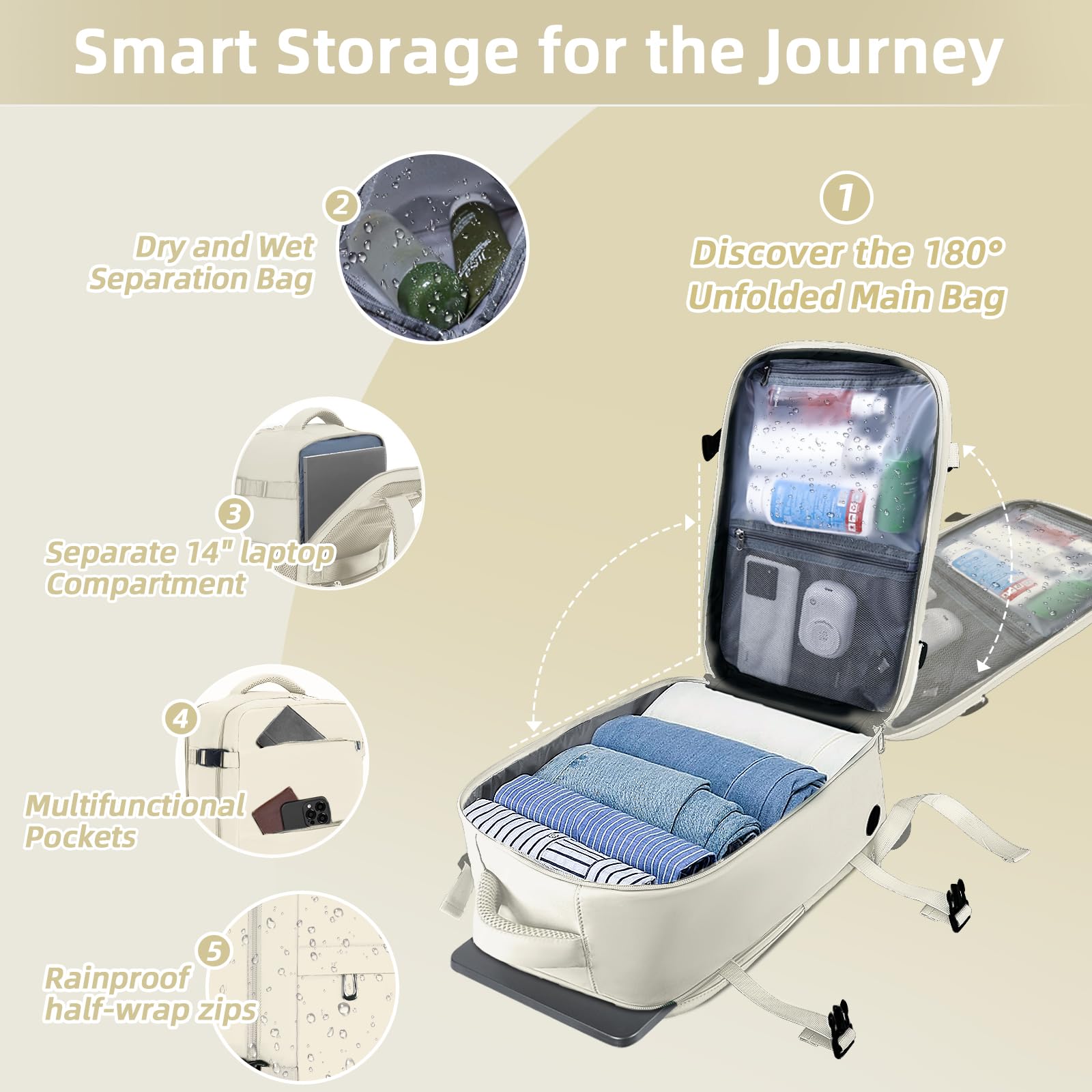 • Großes Fassungsvermögen: Mit einem Fassungsvermögen von 20 Litern ist der Rucksack ideal für Reisen und den täglichen Gebrauch. Das geräumige Hauptfach lässt sich für die Sicherheitskontrollen am Flughafen um 180 Grad öffnen. Ein separates, gepolstertes Laptopfach schützt elektronische Geräte, und eine Anti-Diebstahl-Tasche auf der Rückseite bewahrt Wertsachen sicher auf.