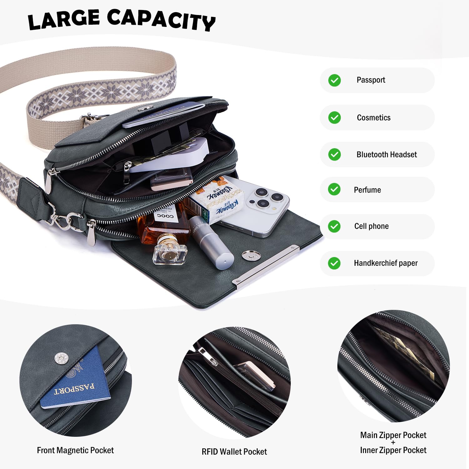 • Damit Sie Ihr Handy sicher aufbewahren und die kleine Umhängetasche bequem tragen können, sind alle Reißverschlusstaschen und der verstellbare Gitarrengurt sehr hilfreich im täglichen Leben. Langer Riemen bietet Ihnen Crossbody oder Schulter Stil beim Tragen bequem