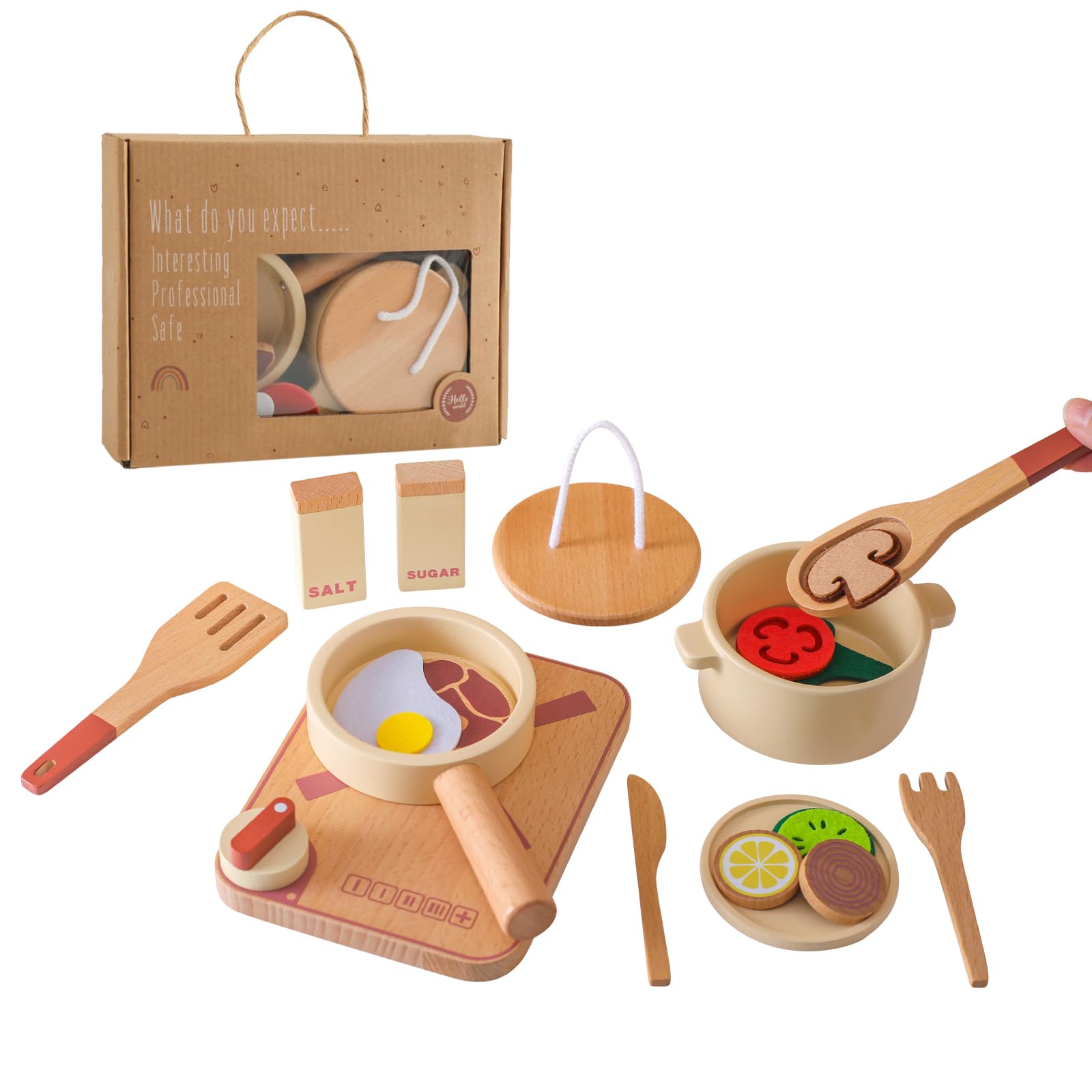 • Ergänzung zur Kinderküche: Dieses Koch- und Servierset aus Holz ist eine gute Ergänzung für jede Spielküche und Puppenküche. Mit seinen realistischen Formen bringt dieses Spielset den Kleinen fröhlichen Spielspaß. Kinder können spielerisch Küchenutensilien und Besteck kennenlernen und ihr Interesse am Kochen entwickeln.