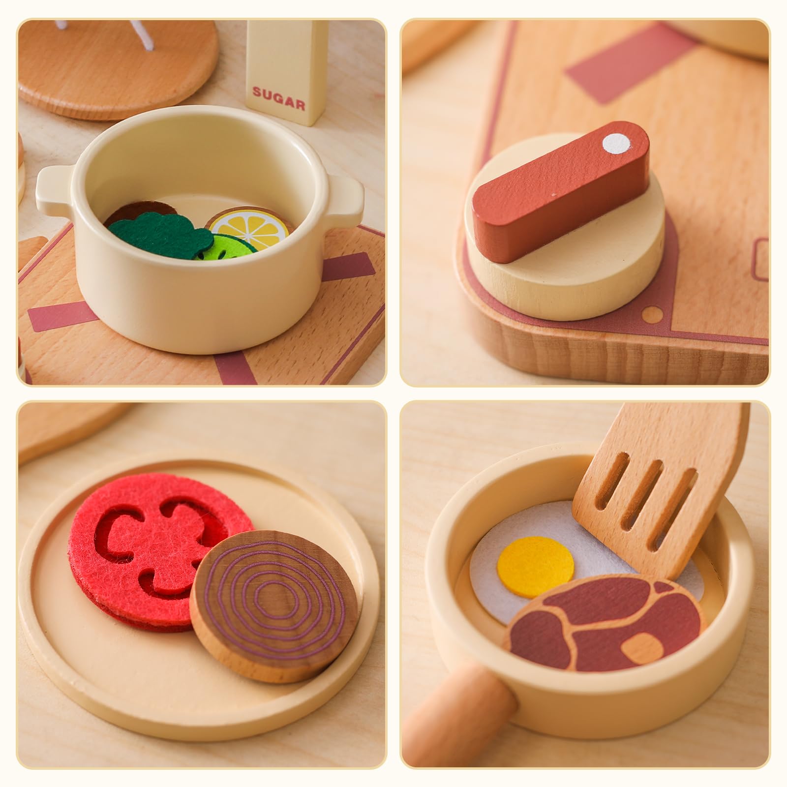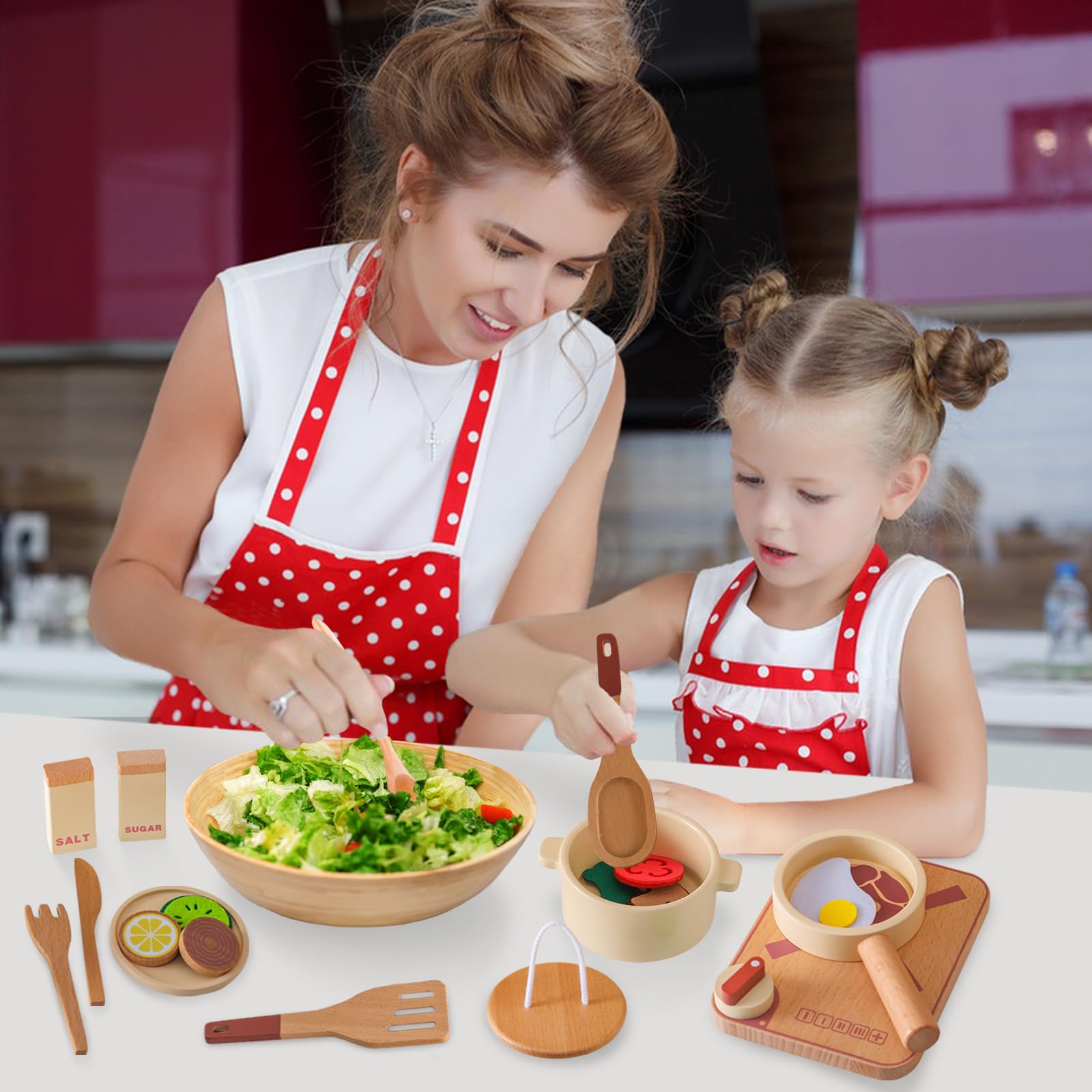 Topfset und Geschirr für die Spielküche, Kinderküchenzubehör aus Holz