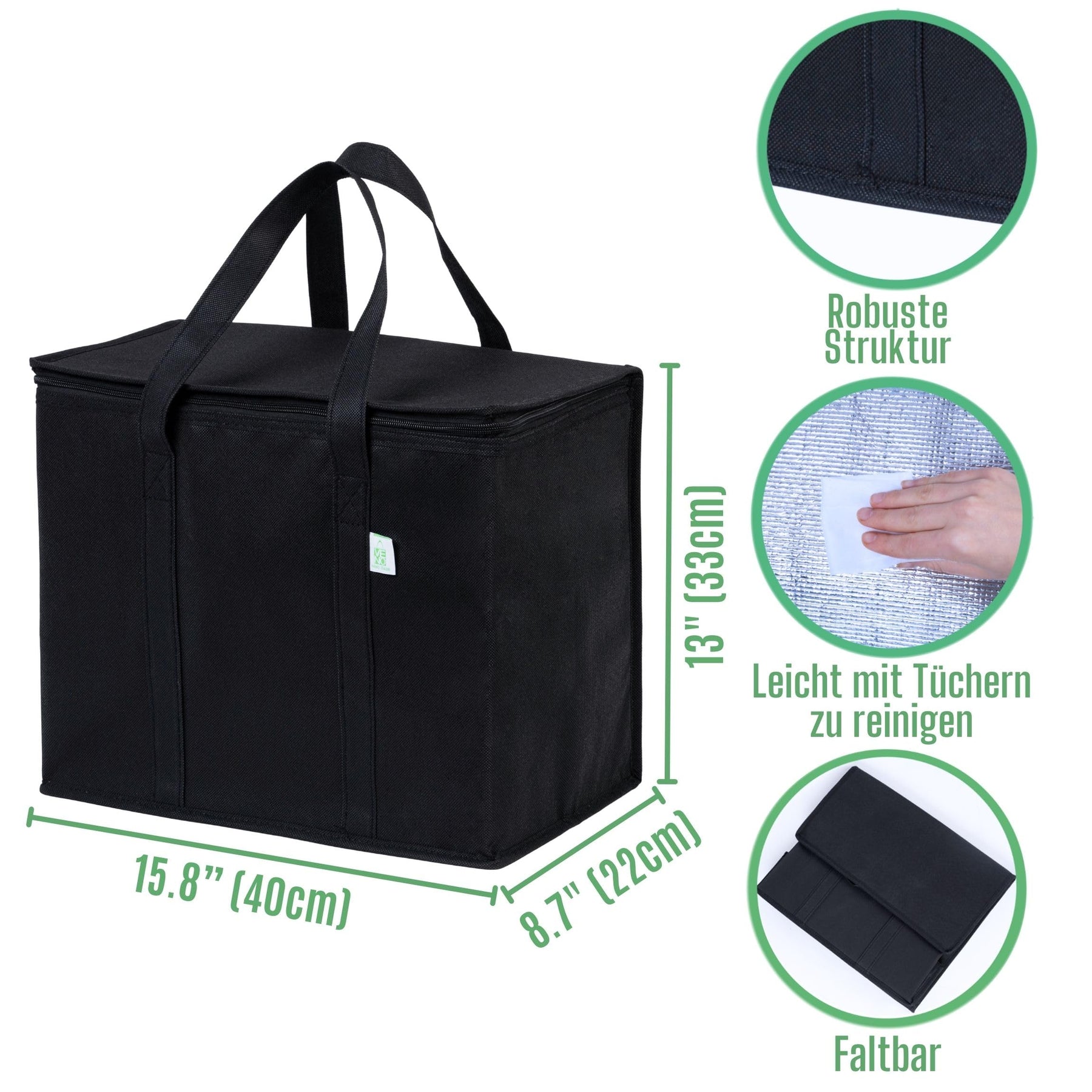 • Das dreischichtige, wärmeisolierende Material hält Ihre Speisen warm oder kühl und immer frisch. Ideal für Tiefkühlkost, frisches Obst und Gemüse und heiße Speisen. Kann als Ersatz für Ihre herkömmliche Kühltasche verwendet werden.