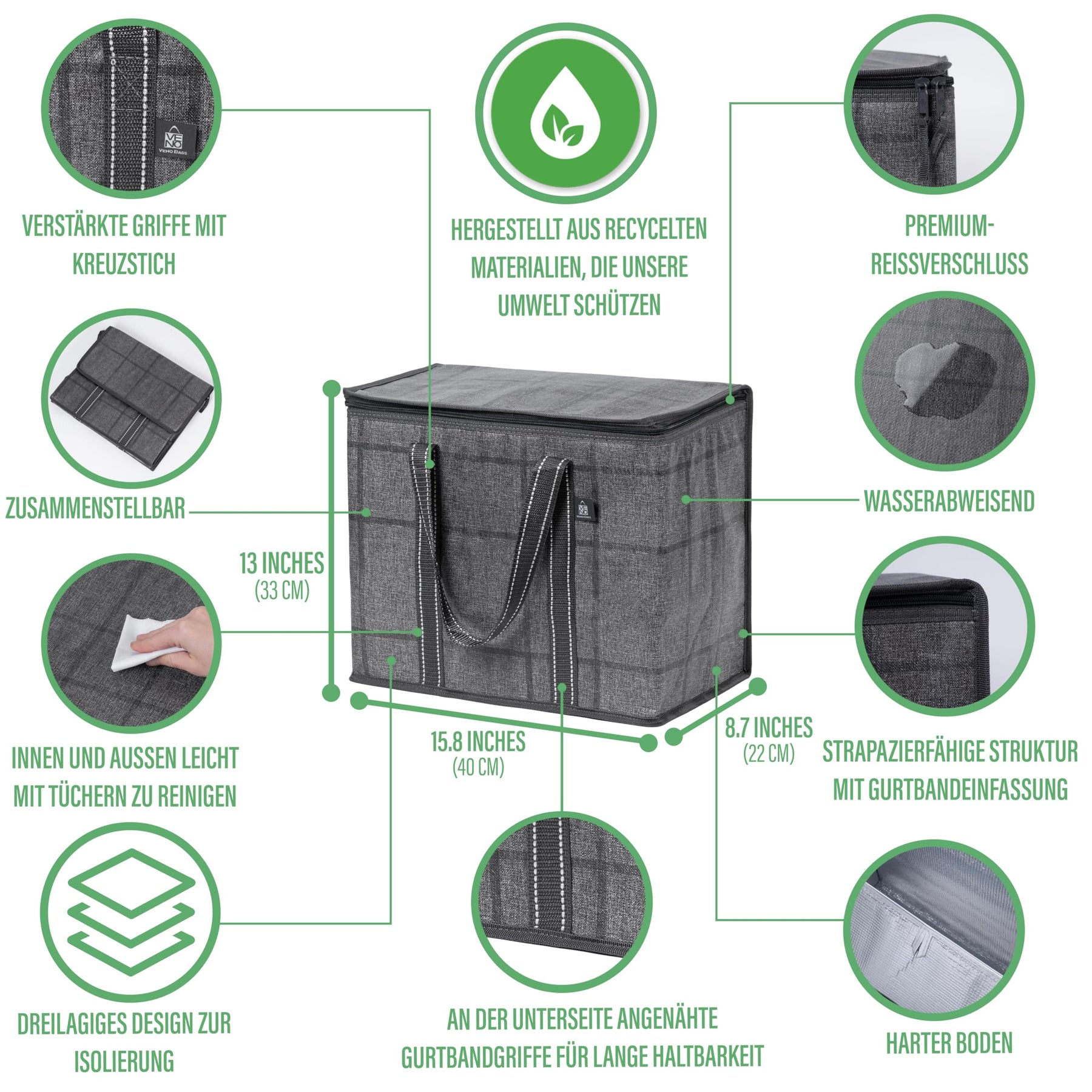 • Das dreischichtige, wärmeisolierende Material hält Ihre Speisen warm oder kühl und immer frisch. Ideal für Tiefkühlkost, frisches Obst und Gemüse und heiße Speisen. Kann als Ersatz für Ihre herkömmliche Kühltasche verwendet werden.