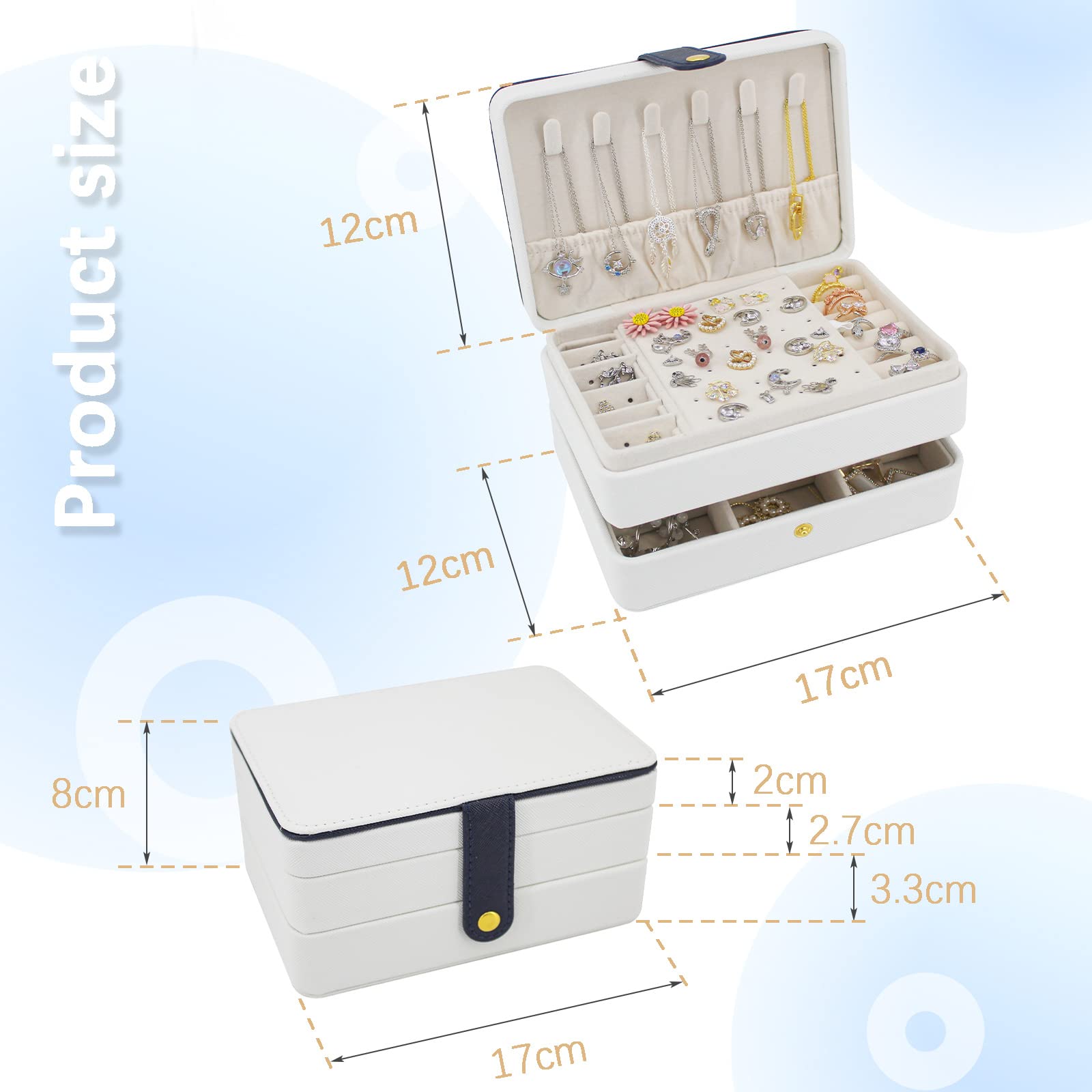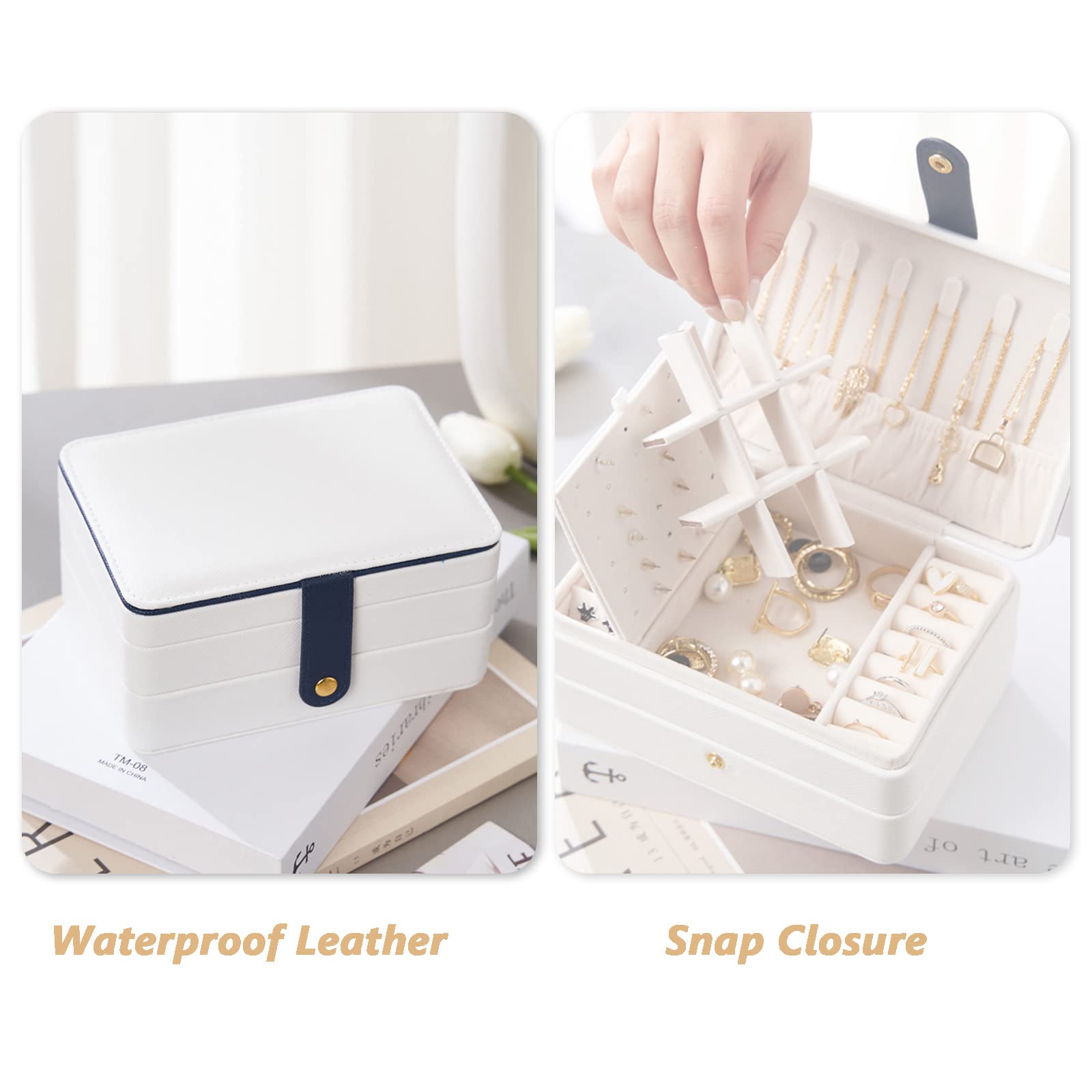 - Wasserdichtes Leder. Die Außenfläche der Schmuck-Organizer-Boxen ist mit PU-Leder überzogen, das weiche Samtinnere schützt Ihren Schmuck nicht nur effektiv vor Kratzern und Kollisionen, sondern zeigt auch Schmuck leicht an, plus der Einhandbedienverschluss, der Verschluss rastet gut ein und ist sehr einfach zu lösen und wieder einrasten. Perfekte Größe, um überall zu passen, während Schmuck schön und sicher bleibt, perfekt für Reisen und den täglichen Gebrauch.