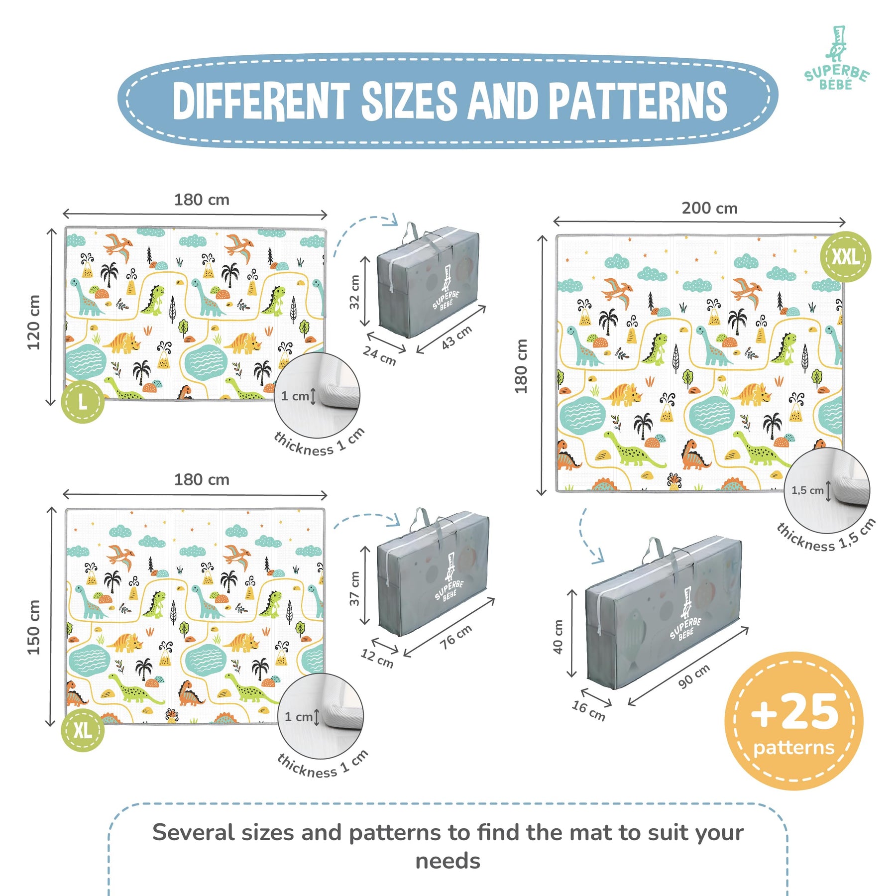 - Großformatige, flexible Aktivitätsmatte, die durch ihren Bezug und das einfache Zusammenklappen leicht zu transportieren ist. Stimulieren Sie die motorischen Fähigkeiten und die Fantasie Ihres Kindes mit 2 verschiedenen Designs.