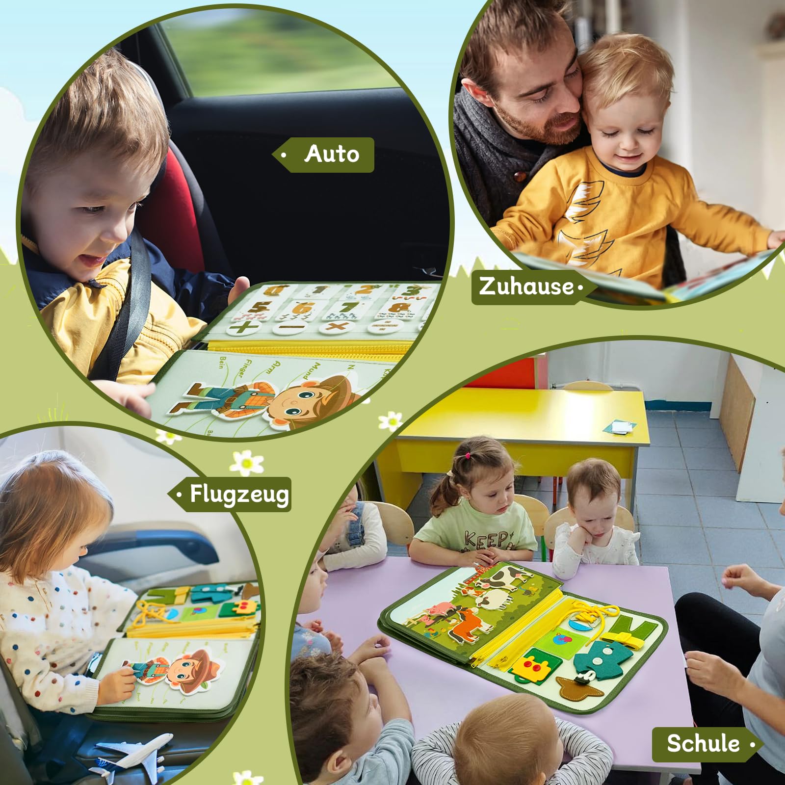 - The German Busy Board is a toy specially designed for children from the age of 2 who are learning German as their first or second language. Our Toy Busy Board for the farm includes various educational elements such as numbers, shapes, colors, time and everyday life skills. By combining play and learning, it allows children to acquire knowledge and have fun at the same time.