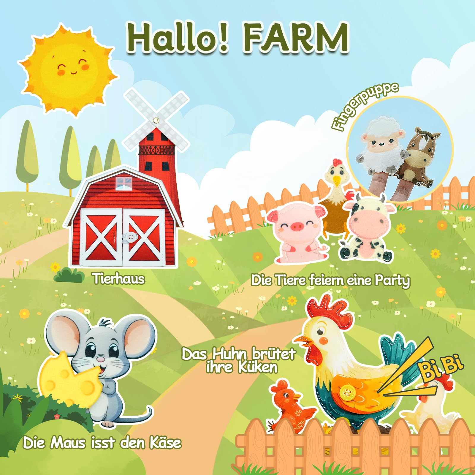 - Made of soft and safe felt in soft colors, Busy Book offers a variety of games suitable for children aged 2-5 years. such as farm hand puppet animals that you can put on your fingers for games and performances. Peasant puzzles help children to learn the names and location of different parts of the body. There is also an abundance of colorful content waiting to be explored by your child.