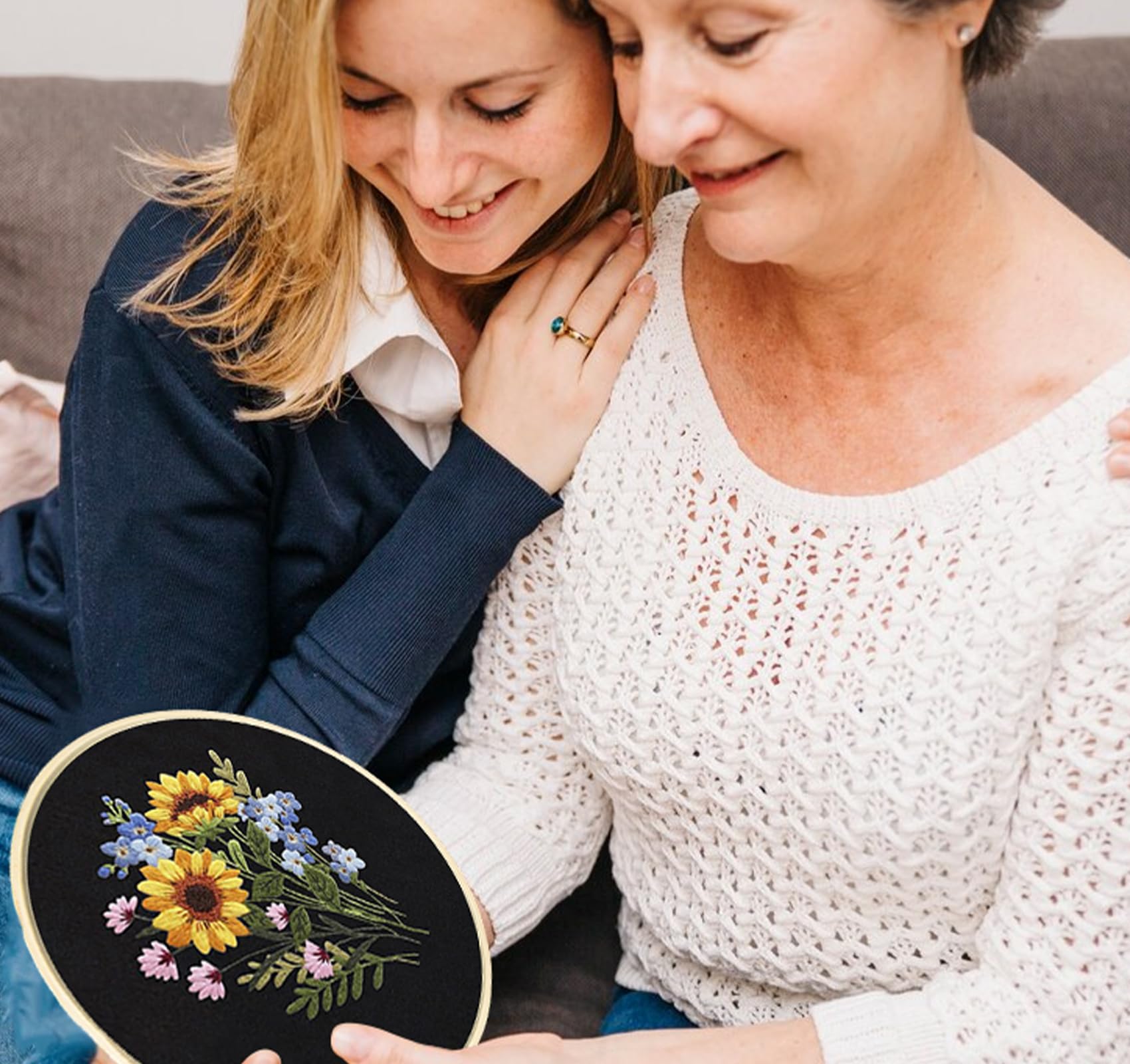 • The printed bags are already finished with a beautiful sunflower motif. This embroidery kit is ideal for beginners. With detailed instructions and easy-to-use tools, you can dive into the world of embroidery with ease.