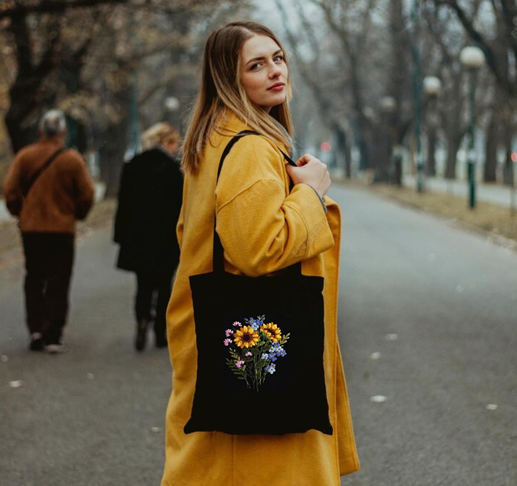 Canvas tote bag embroidery kit, DIY handmade cross stitch bag tote bag with embroidery