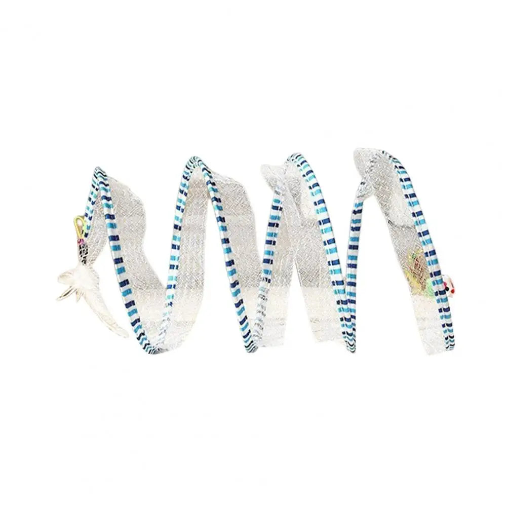 - The cat tunnel toy is easy to roll up and store when not in use, ideal for space-saving and convenient storage. Plush toys and feathers on both ends attract cats to active activities, stimulating mental activity and playfulness.