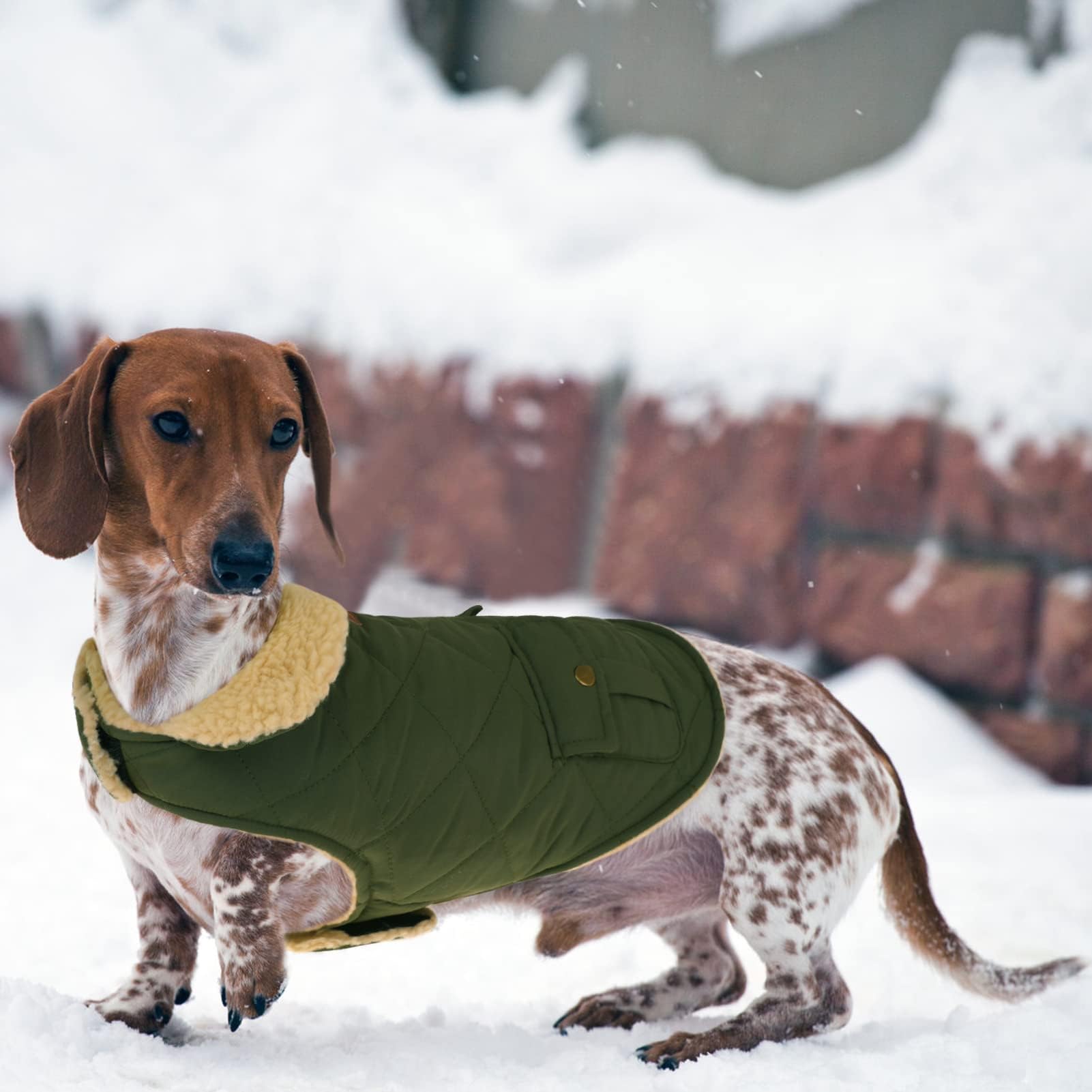 • Ultra-warm ; windproof protection The winter dog coat is made of soft windproof polyester with thick PP cotton padding and soft fleece lining. Keeps your dog dry and warm in snow, rain and cold – ideal for outdoor activities such as hiking or walking in the snow.
