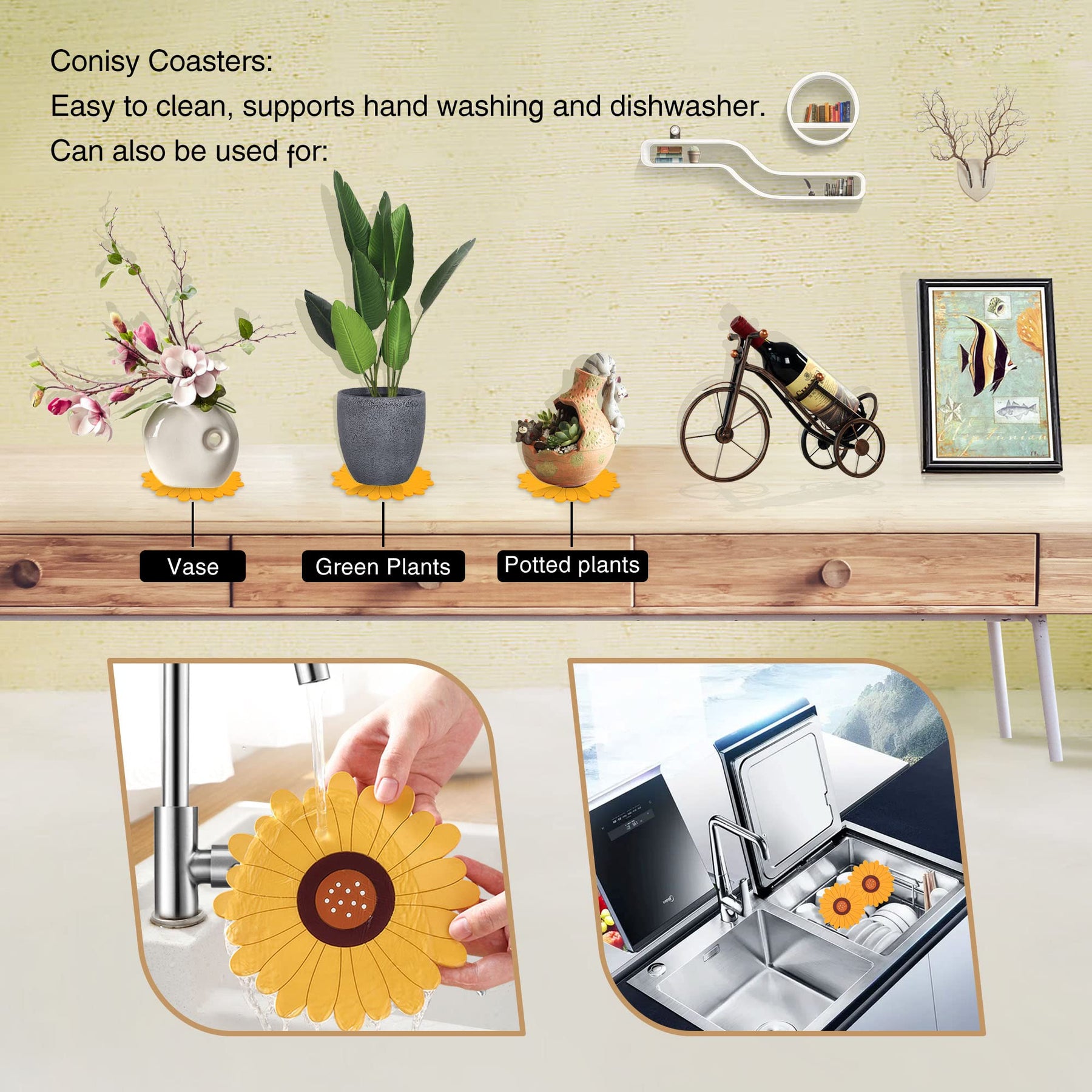 - Easy to clean - This Conisy cup coaster set is perfect for everyday use. They are dishwasher safe and therefore extremely easy to clean - use them on the tabletop, coffee table or office. After you've used them, simply rinse them with water or put them in the dishwasher, it's that easy.