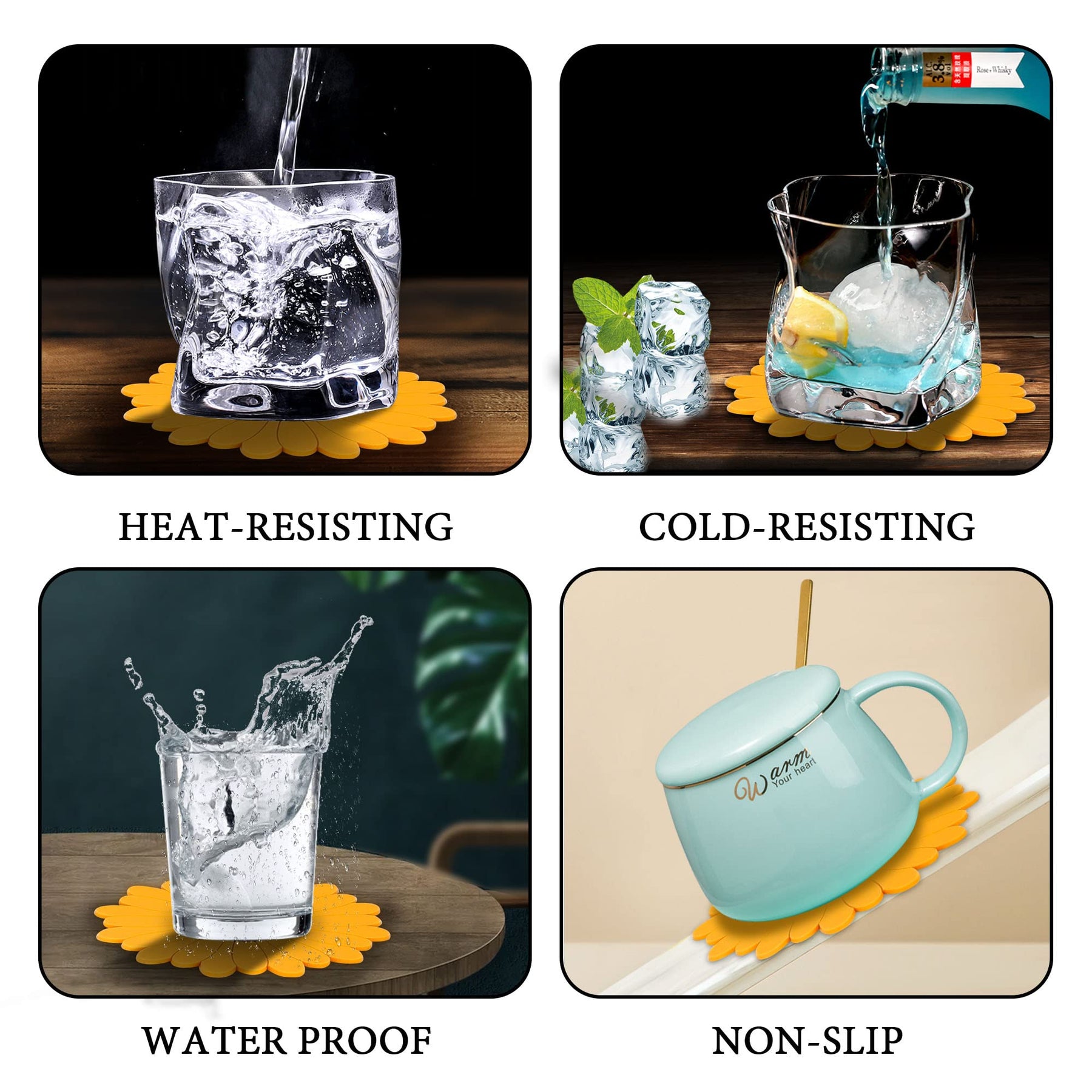 - Protects your furniture - our cup coasters are non-slip and provide good thermal insulation, can be used for both iced and hot drinks. No fear of scratches or burn marks on your furniture. And no worries about slipping cups.