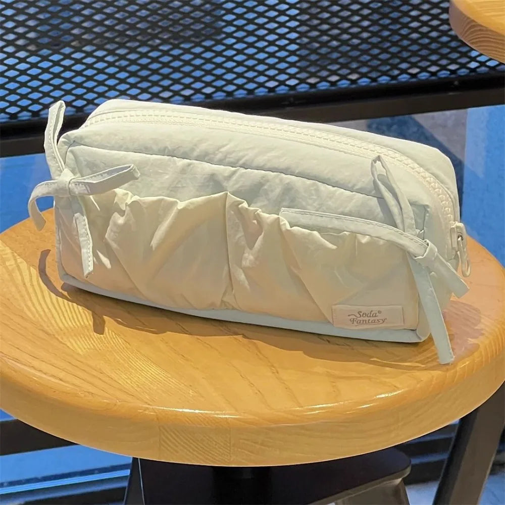 Cute Bright-colored Pencil Bag with Large Capacity with Dopamine Bow, Stationery Storage Bag, Portable Pencil Case for Students