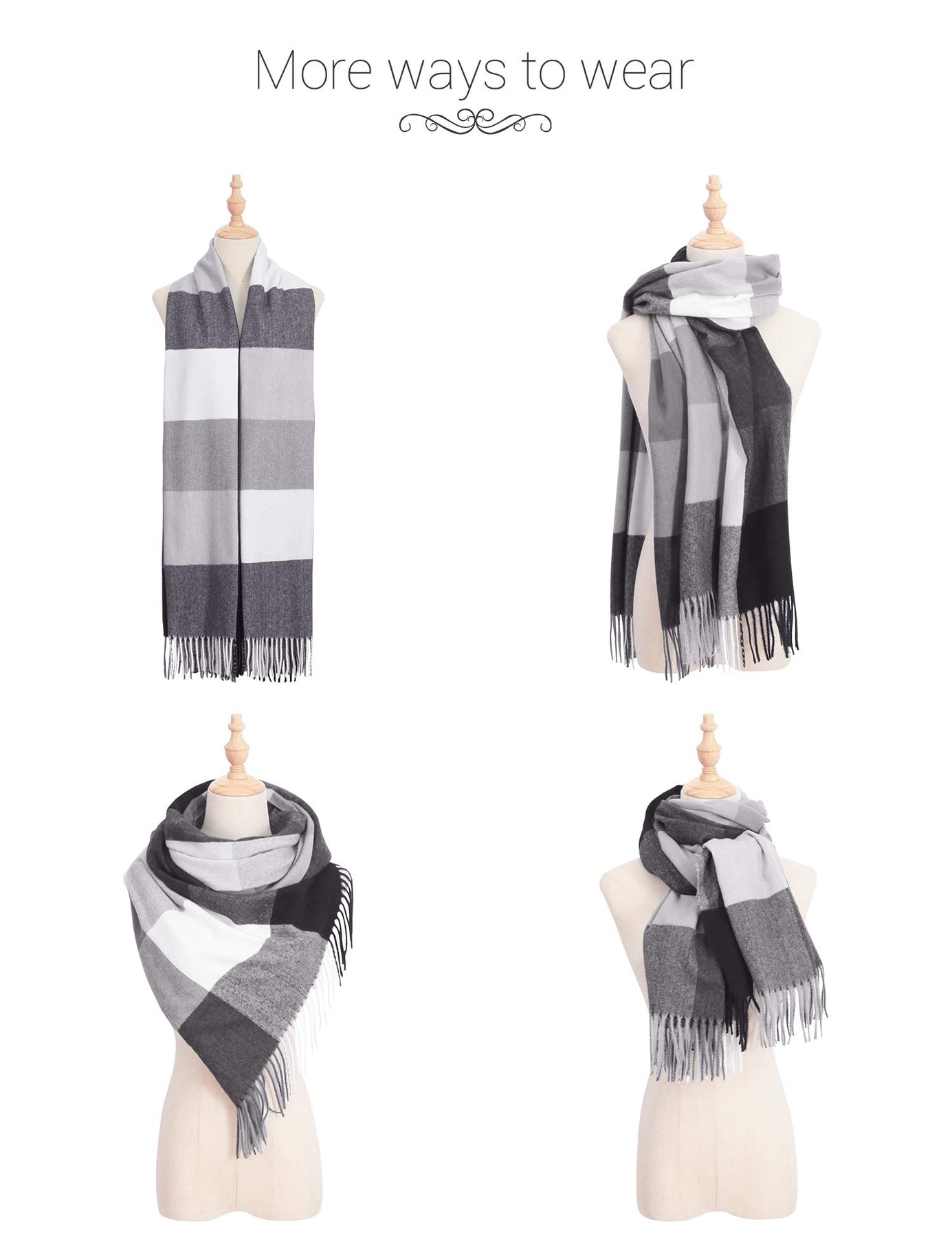 • One Size fits All: This scarf for women is 200 cm long (10 cm tassel included on each side), width 70 cm. This oversized scarf for women is rolled up and easily packed in your handbag. Every time you need it, it stays wrinkle-free and falls beautifully. These winter scarves are soft, medium weight, wrap the oversized scarf freely around any outfit and keep you warm all day long
