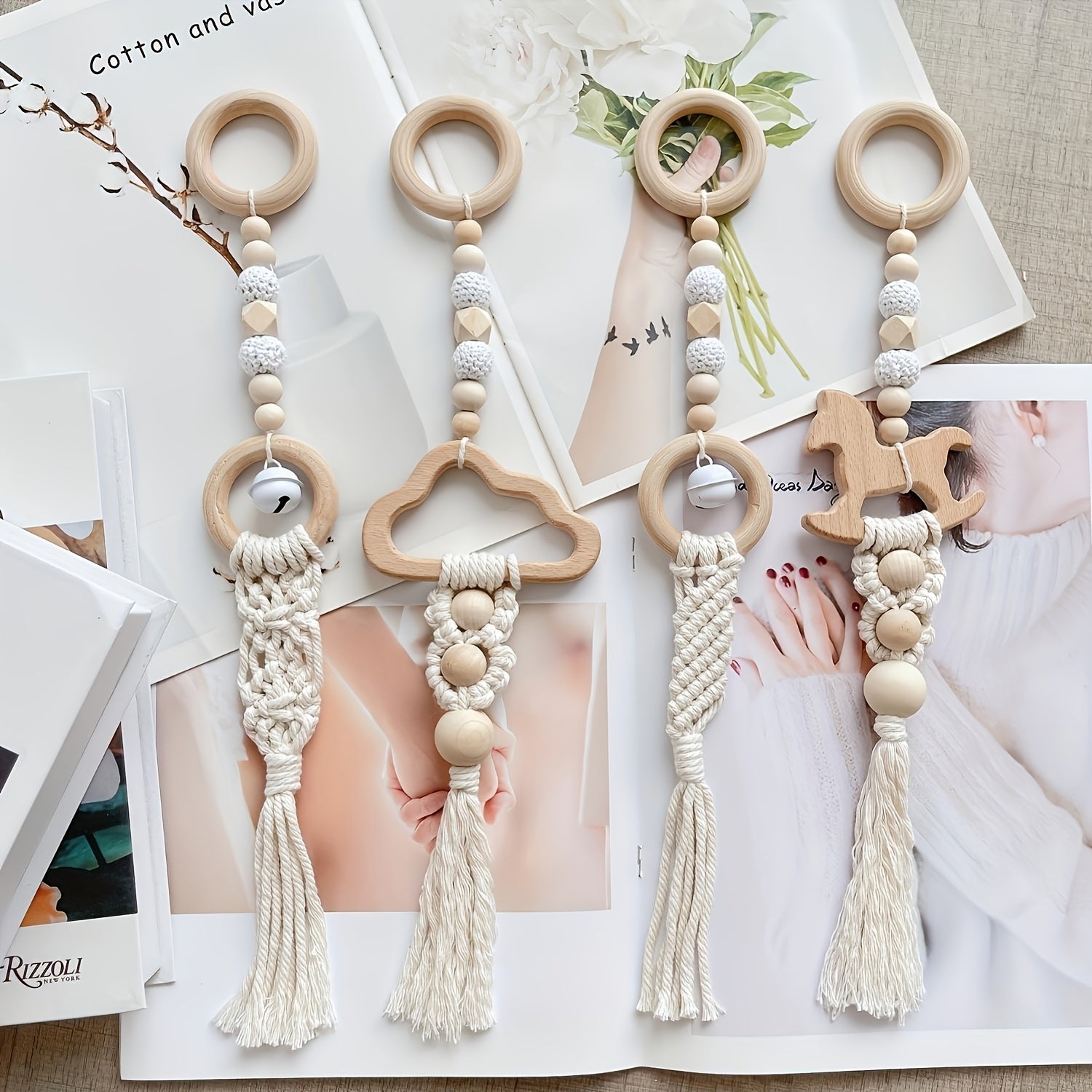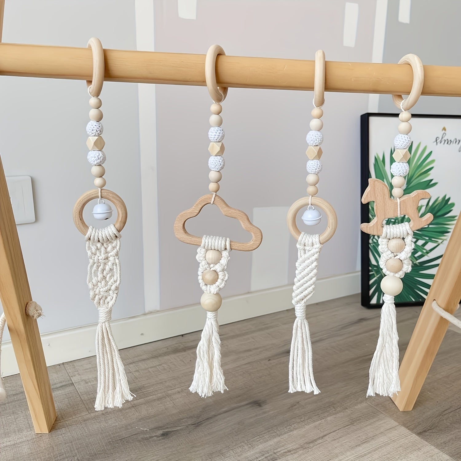 Set of four-piece creative handmade Scandinavian style pendant ornaments, wooden props