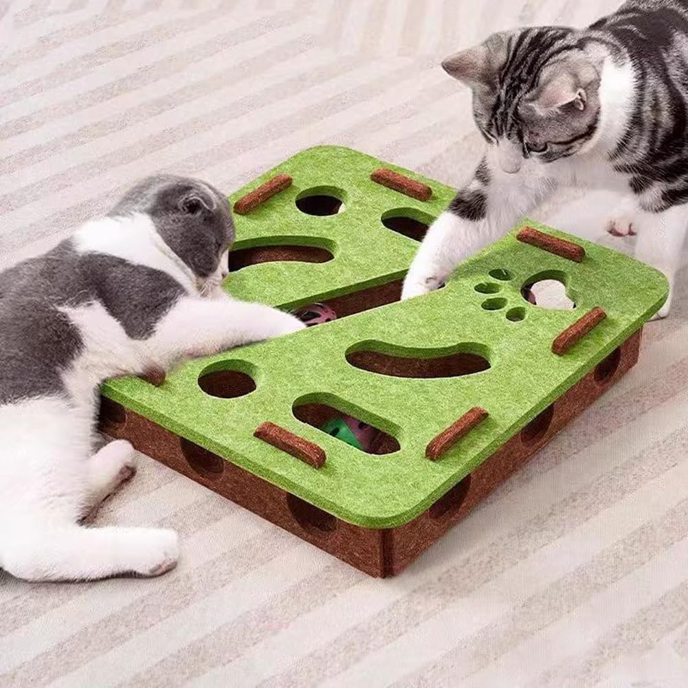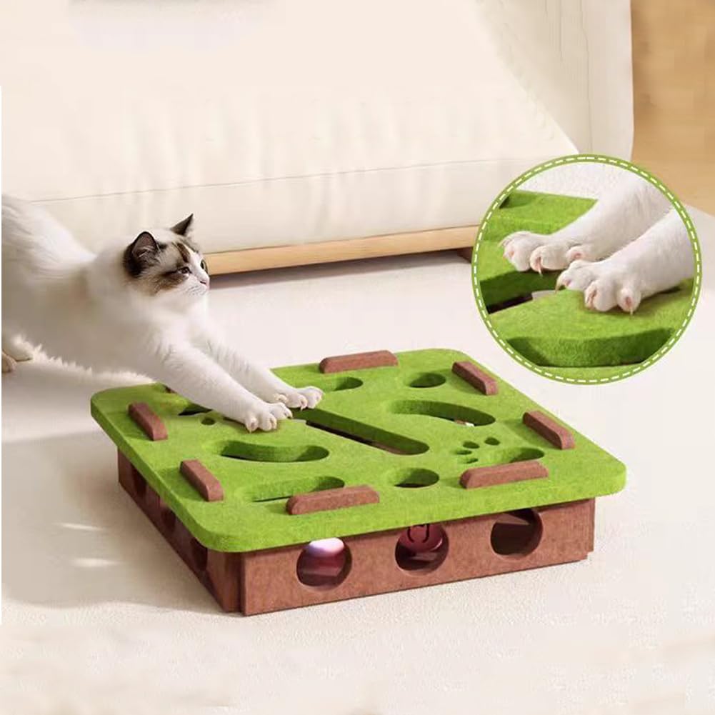 - Eating slowly is fun - the cat maze toy also serves as a food dispenser. Hide treats in this felt-lined puzzle box and turn feeding time into a tricky game! Let your cat hunt for treats - this slows down their eating behavior, prevents stomach discomfort and keeps their mind fit