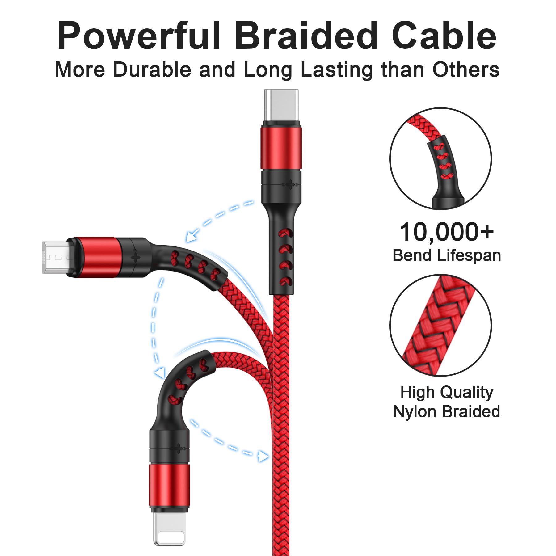 - Multi Charging Cable has 3 different charging ports, Micro USB, USB Type C connector and Phone, Only 1 cable for your daily charging needs. When traveling, in the office, in the car or at home, so your life will be more convenient and easier.