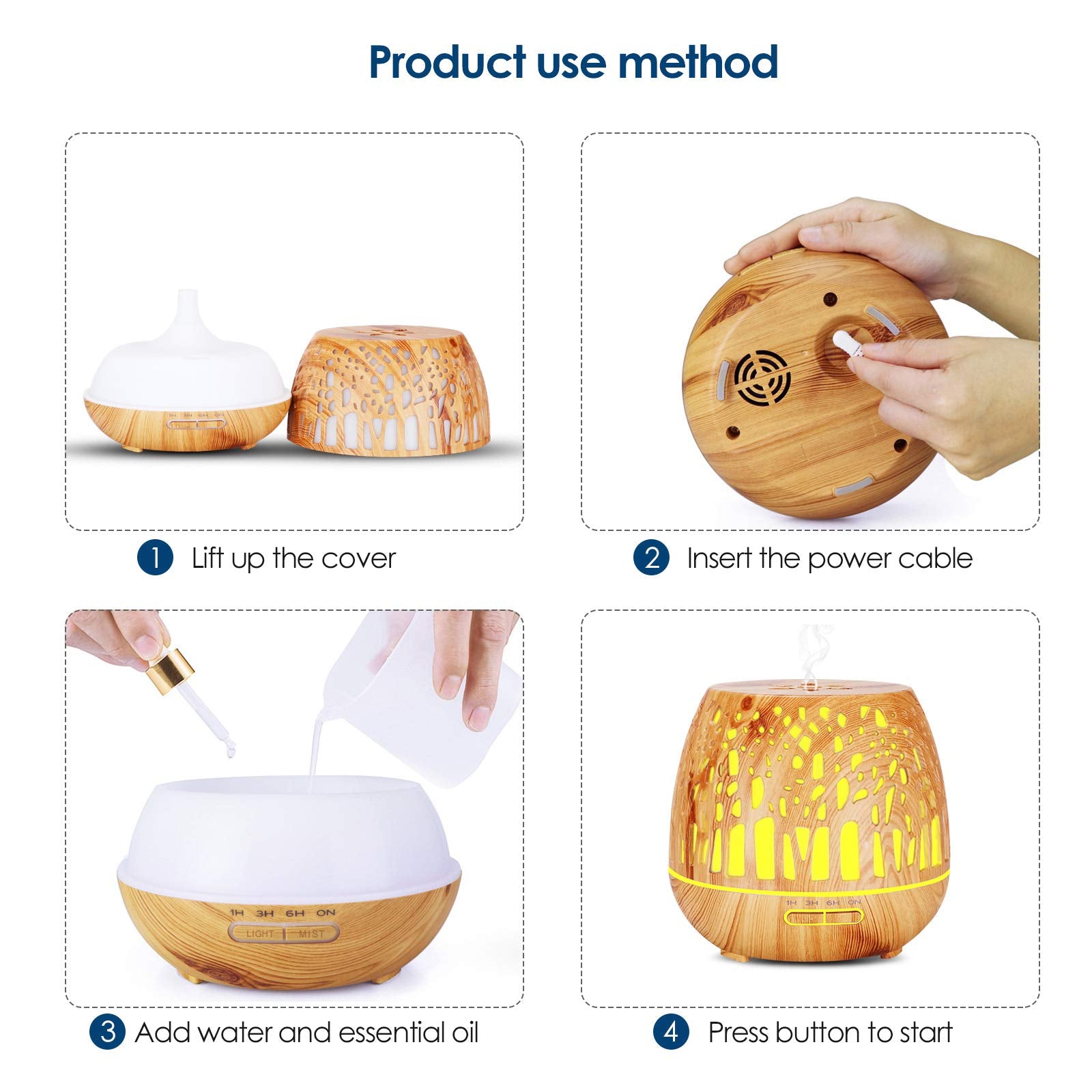 • Unique design -carved forest design, made of environmentally friendly and harmless material, suitable for rooms with different styles. Aroma diffuser, but also optional crafts to decorate your place.