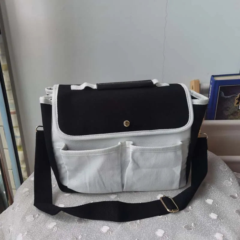 - The bag is made of high-quality canvas, resistant to wear. It is suitable both for carrying in the hand and for attaching to the stroller with fasteners.