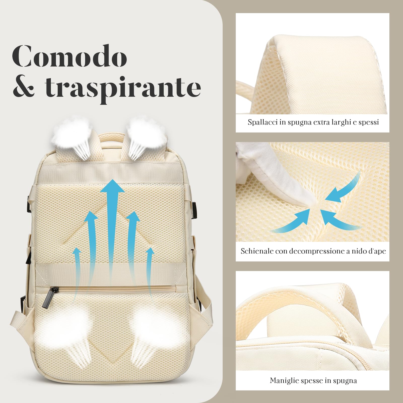 •  This Ryanair carry-on backpack 40 x 20 x 25 cm is made of durable scratch-resistant and waterproof Oxford fabric with compressed side design, which allows you to load more items in the limited space of 20 liters in the cabin. The thick foam material on the back and shoulder straps improves breathability and comfort.