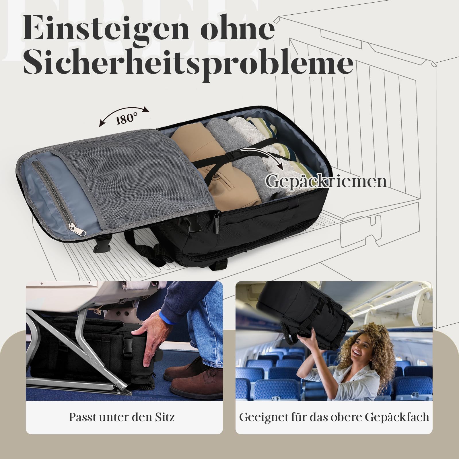 • This travel backpack hand luggage airplane,is equipped with a special laptop bag, and has a suitcase hand luggage design Both the main compartment and the laptop compartment, can be fully opened by 180 degrees. to increase the speed of security checks at the airport