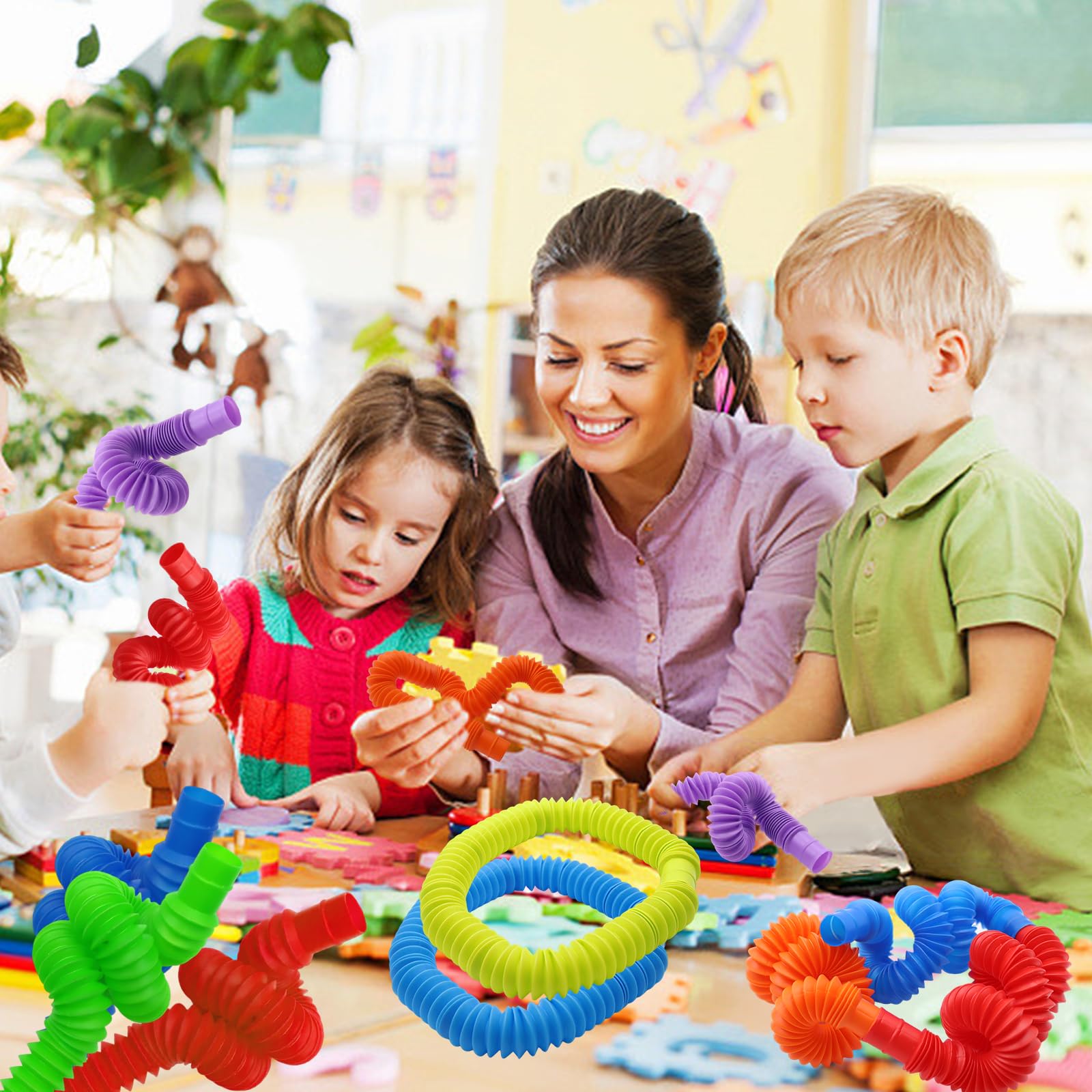 - Teenagers and adults Pop Tube Toys can not only occupy their fingers to drive away boredom, relieve stress and anxiety, but also be used as an interesting game accessory for school, parties and other events, resulting in hours of fun and enjoyment.