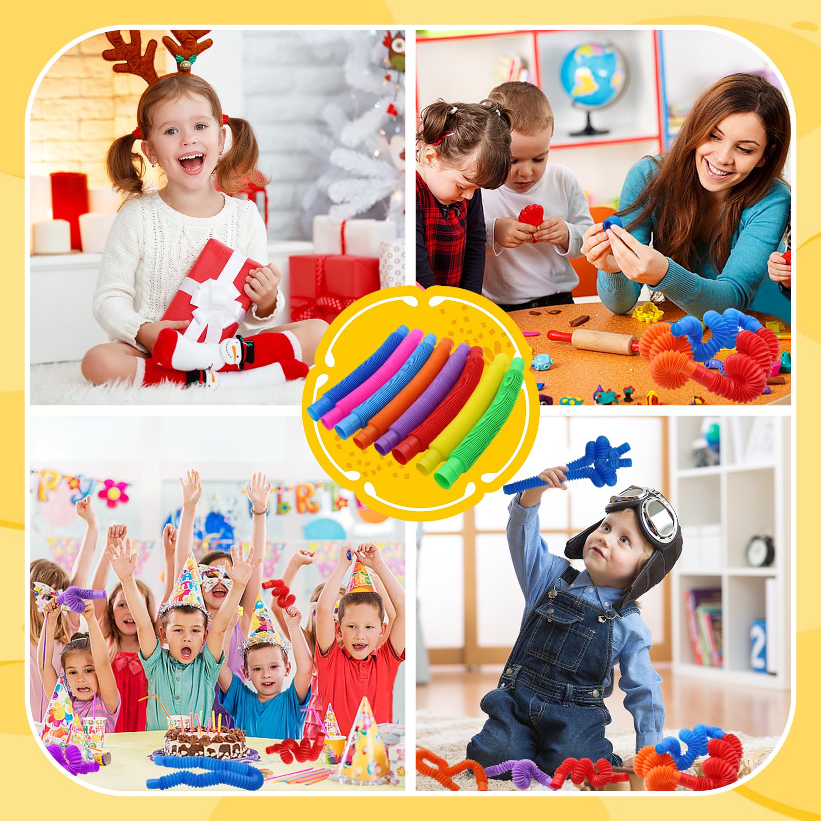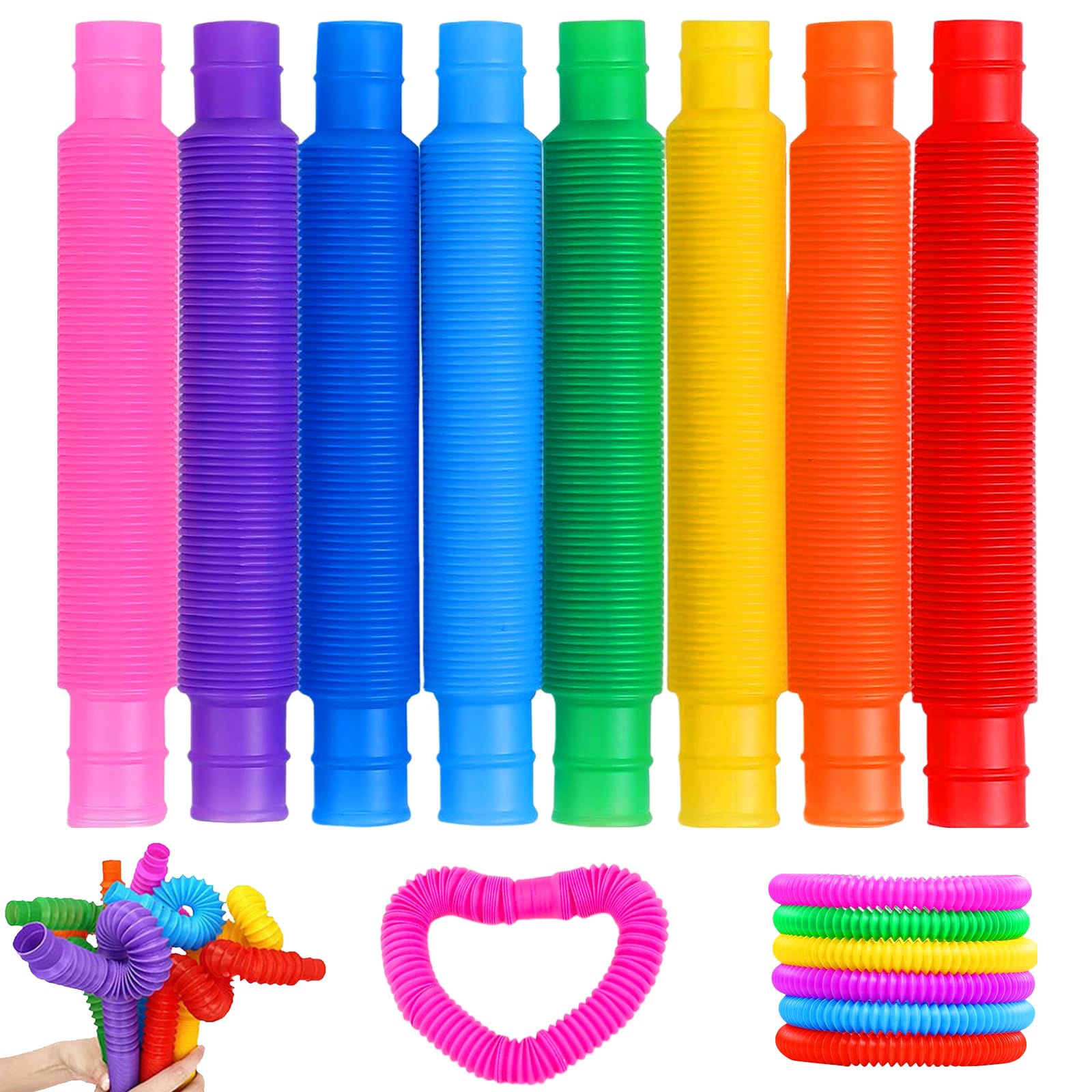 - Pop Tubes are lightweight, easy to carry. they can be stretched or twisted into any shape easily be restored to a prototype, The bursting tube is designed and suitable for ADHD, autism, children and adults under great stress.for toddlers, kids, boys, girls as Halloween gifts, Christmas gifts, New Year gifts, birthday gifts.