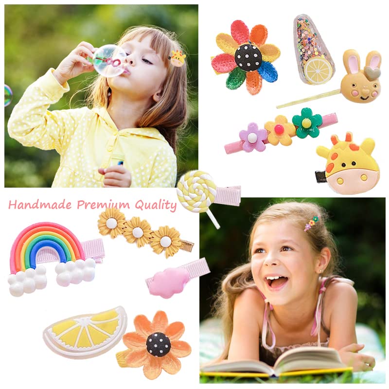 - Le set de 28 pinces à cheveux pour filles présente de jolis motifs de dessins animés, tels que des fleurs, des fruits, des arcs-en-ciel, etc.