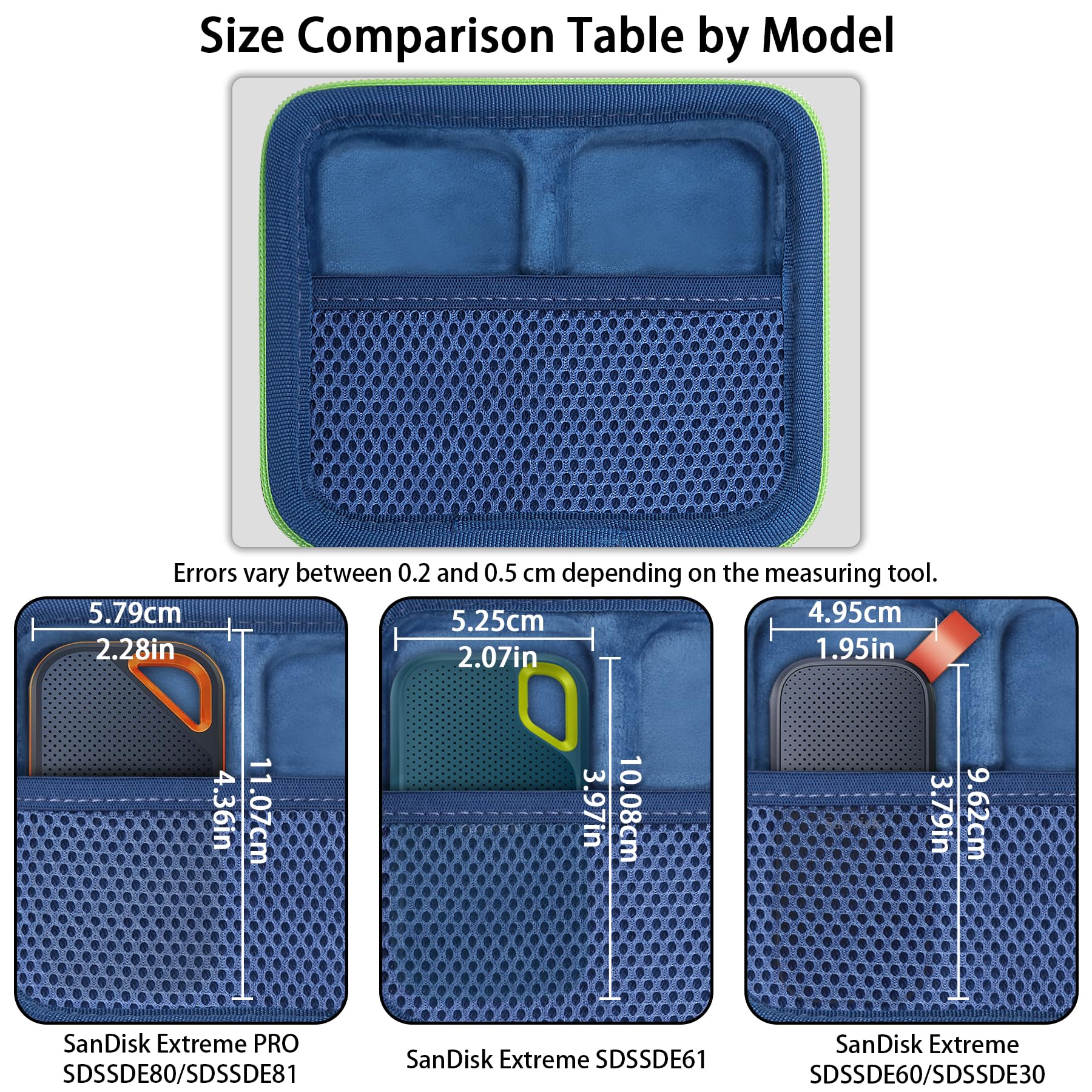 • Vous recevrez : Un seul étui, le SanDisk Extreme Portable SSD et les autres accessoires ne sont pas inclus. Taille du produit : 15*13*5 CM, Poids : 203g.