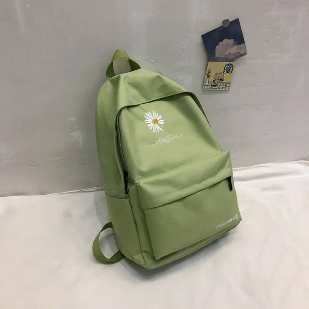 Sac à dos Scolaire en Toile Daisy Broderie Cartable Grande Capacité Sac de Voyage Portable Étudiant