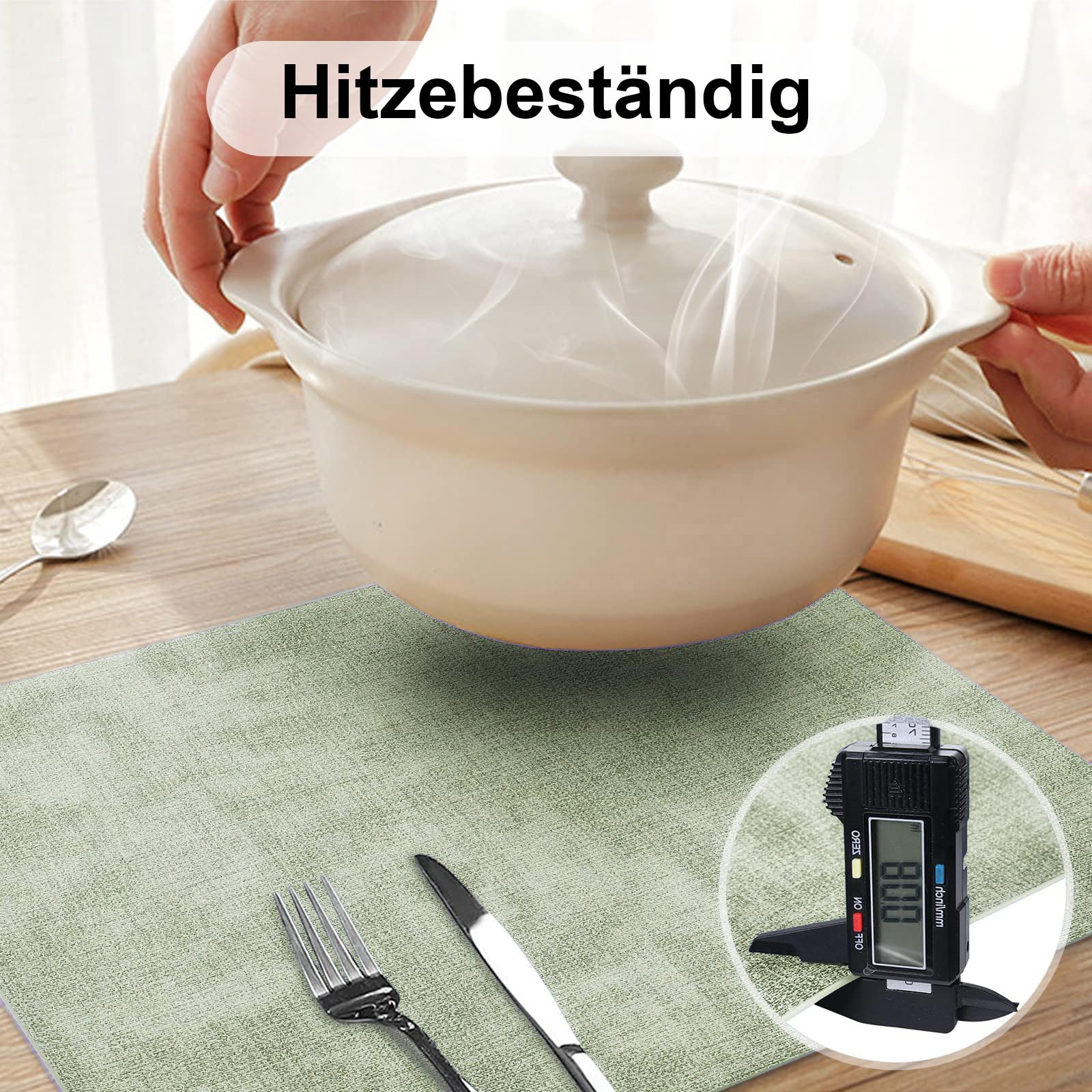 • Utilisables des deux côtés : Nos sets de table sont dotés d'un design épais sur les deux faces, avec une texture en lin sur les deux côtés pour une meilleure résistance au glissement et une isolation jusqu'à 212°F, protégeant ainsi efficacement votre table des dommages causés par la chaleur.