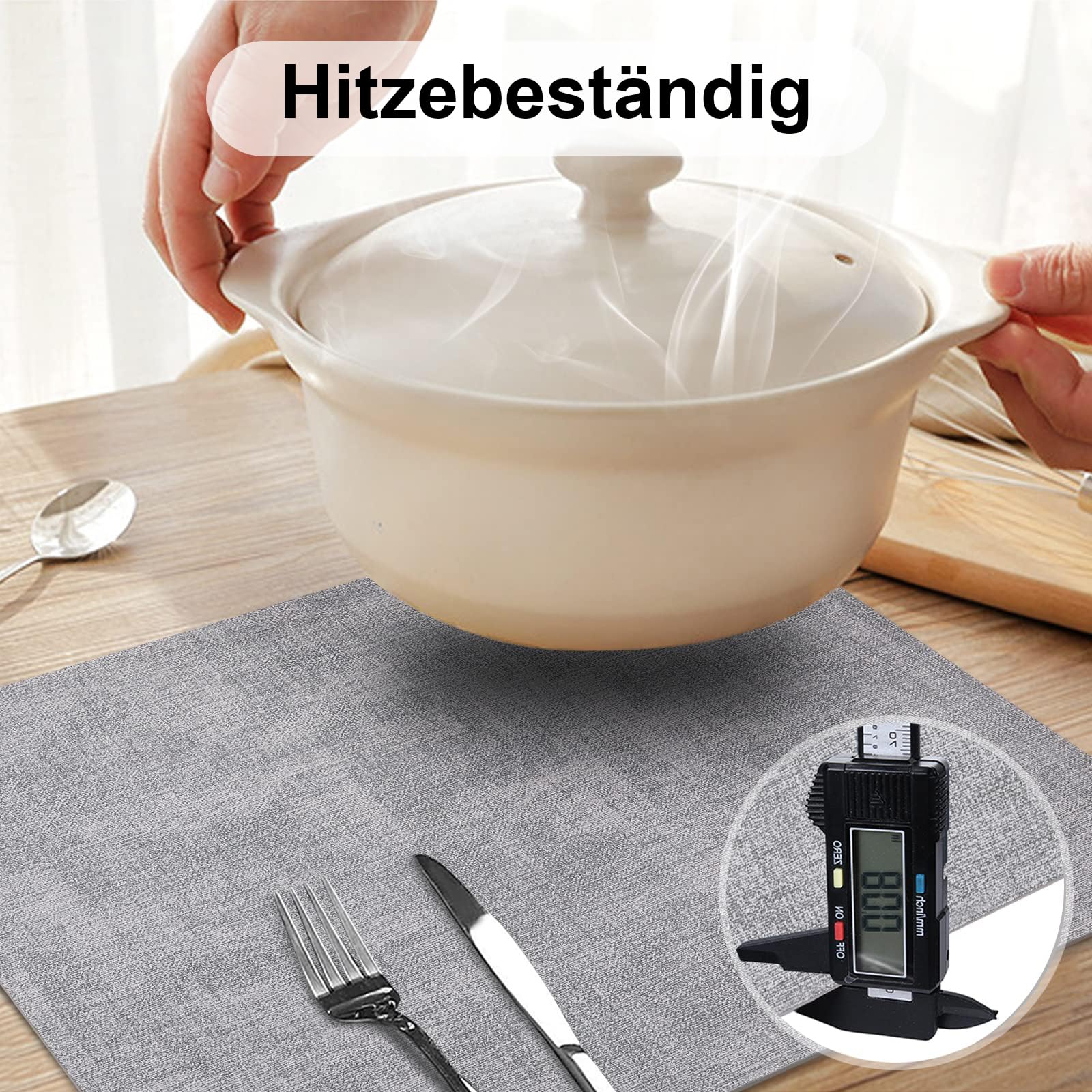 - Voidaan käyttää molemmin puolin: Istuinalusmatoissamme on kaksipuolinen paksuuntunut muotoilu, jossa on pellavakuvioinen rakenne molemmilla puolilla, mikä parantaa liukastumisen kestävyyttä ja eristystä jopa 212 ° F: iin asti, mikä suojaa pöytääsi tehokkaasti lämpövaurioilta.