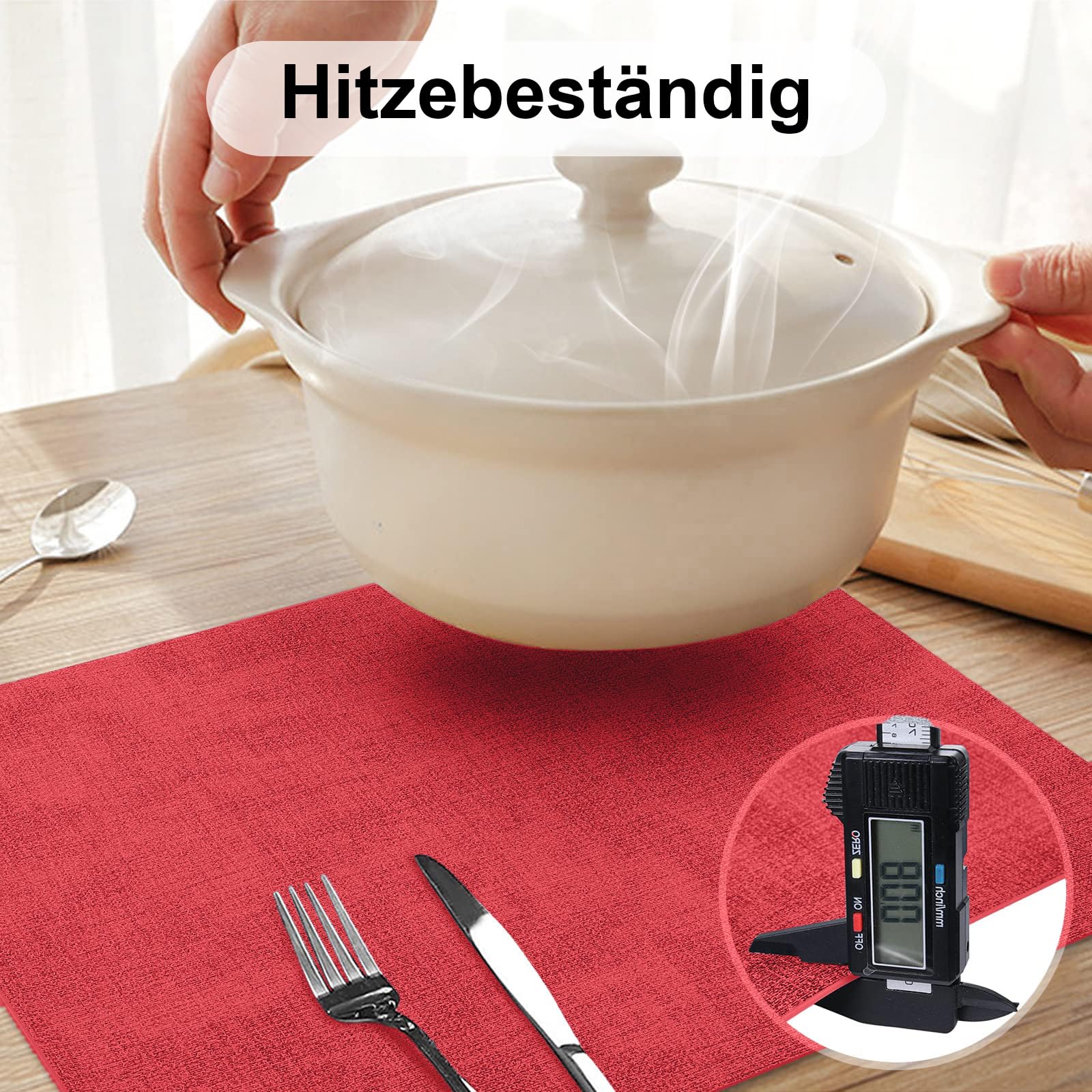 - Utilisables des deux côtés : Nos sets de table sont dotés d'un design épais sur les deux faces, avec une texture en lin sur les deux côtés pour une meilleure résistance au glissement et une isolation jusqu'à 212°F, protégeant ainsi efficacement votre table des dommages causés par la chaleur.