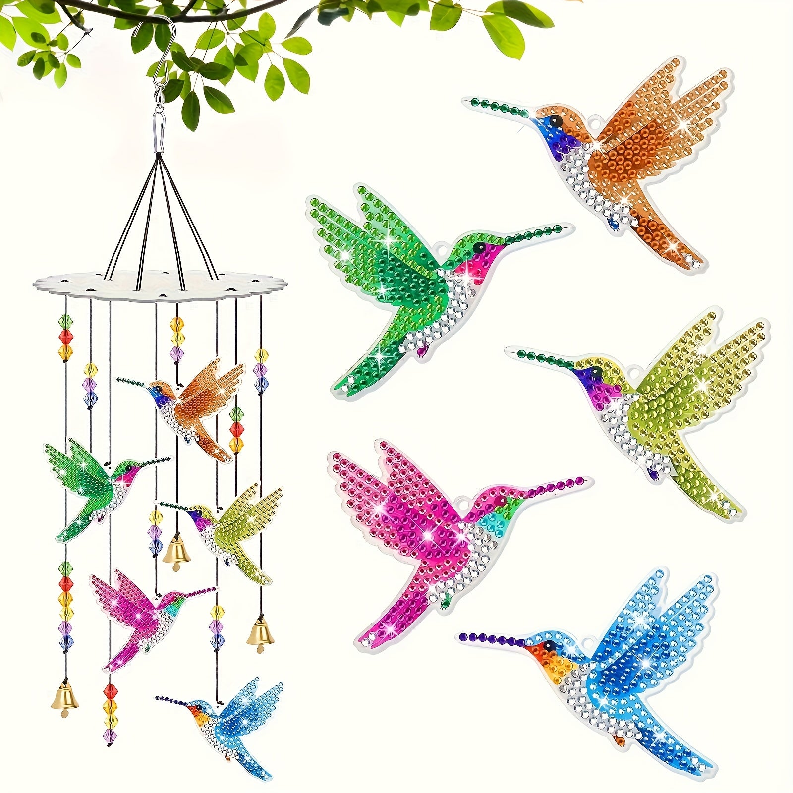 - DIY colibri diamant kits d'art pour les adultes : colibri diamant peinture carillon éolien ornement suspendu, avec des breloques et des accessoires de point. Peut être utilisé comme décoration de voiture suspendue. C'est un cadeau idéal pour les amoureux de la peinture en diamant.