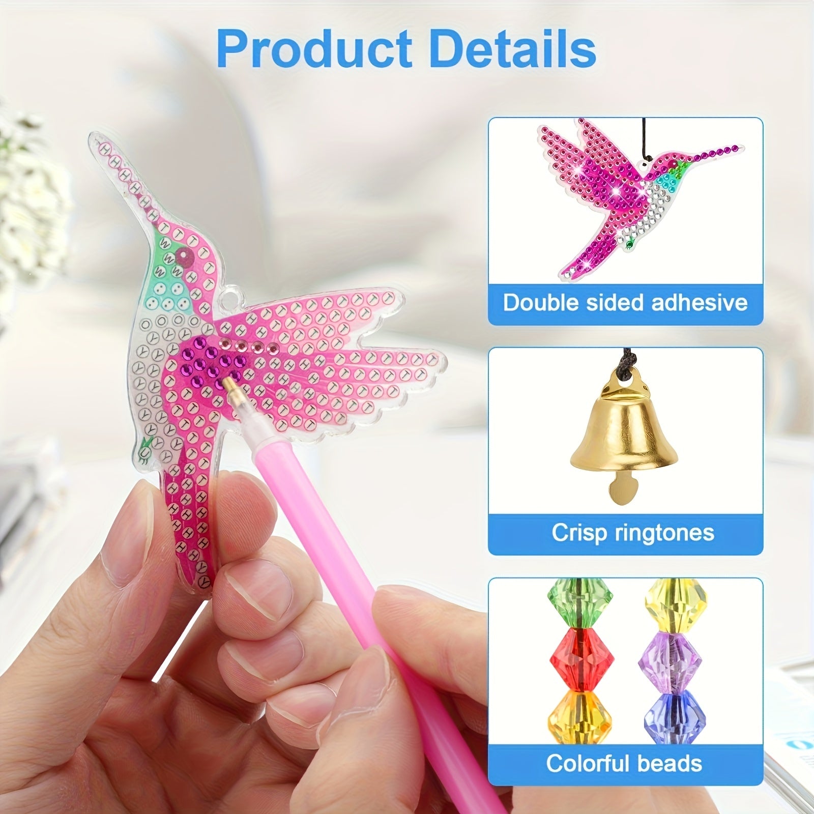 - Large application : Les carillons de colibris à points de diamant peuvent être utilisés comme étiquettes de cadeaux, étiquettes de vœux, porte-clés de Noël. Ils peuvent également être utilisés comme accessoires modernes pour décorer vos porte-clés et vos sacs.