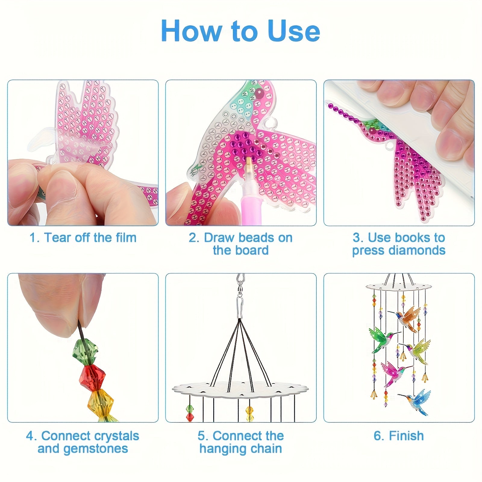 - Profitez de votre propre temps : Le temps passe vite, il faut profiter du temps qui nous appartient. Avec les kits de peinture en diamant pour colibris, vous pouvez bricoler à votre guise ou utiliser les carillons à vent pour colibris pour faire de l'artisanat avec votre famille ou vos amis.