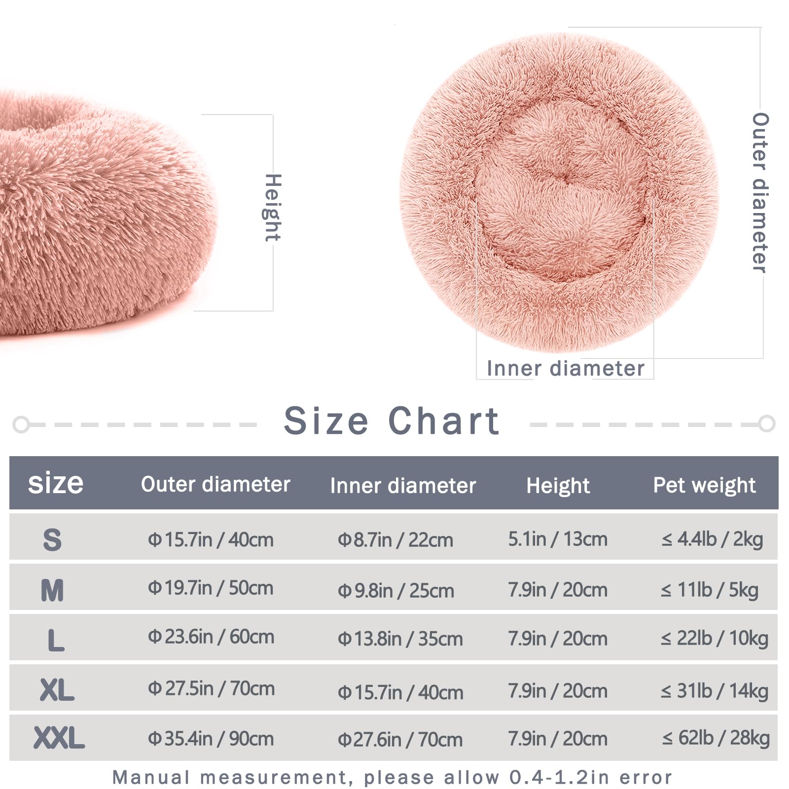 Lit pour chien et chat Peluche ronde et duveteuse - Donut Coussin câlin pour chien Panier pour chien lavable Chiens, chats et autres animaux de compagnie de taille moyenne et grande