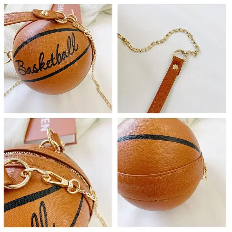 Intéressant sac de basket-ball en cuir en forme de ballon, sacs à main pour adolescents, sacs à bandoulière avec une chaîne sur l'épaule, sacs à main, un sac rond
