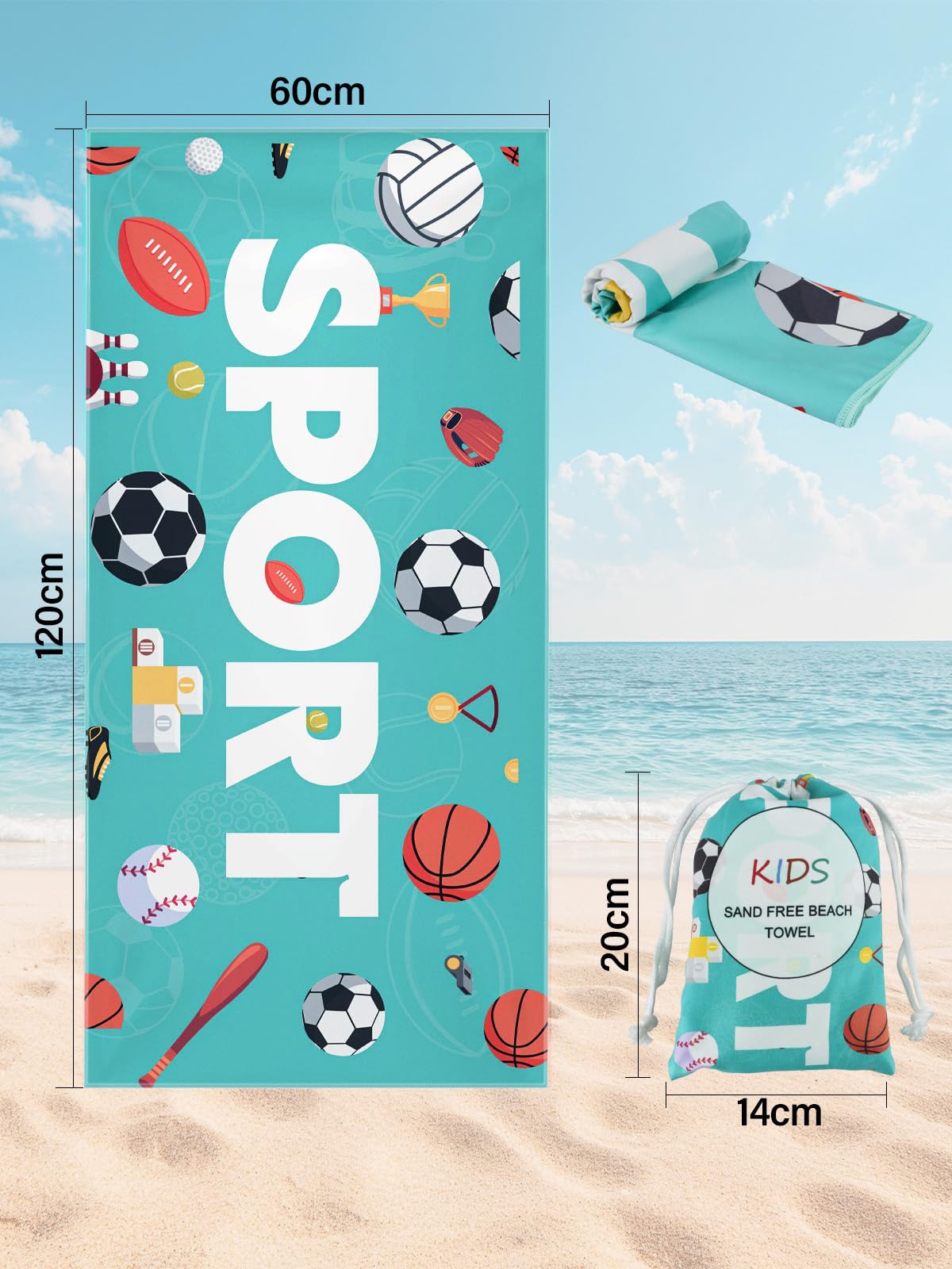 • sac de rangement unique : Cette serviette de plage organiseur a un design unique avec la même impression sur le sac que la serviette de plage.Non seulement pratique à transporter, mais aussi pour vous de stocker de petits objets.Cette serviette de plage est le cadeau le plus approprié pour les enfants.