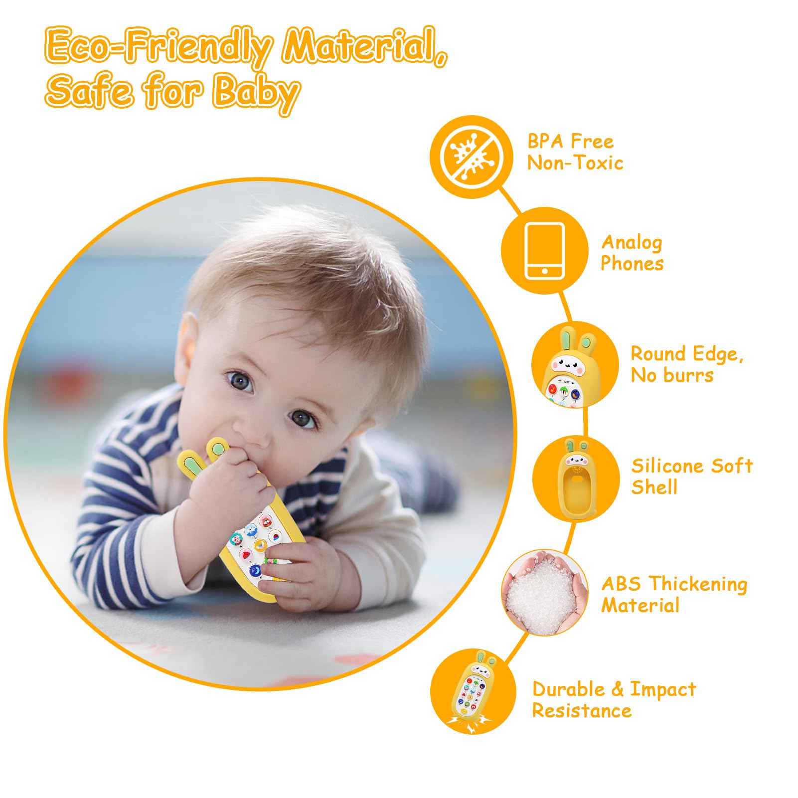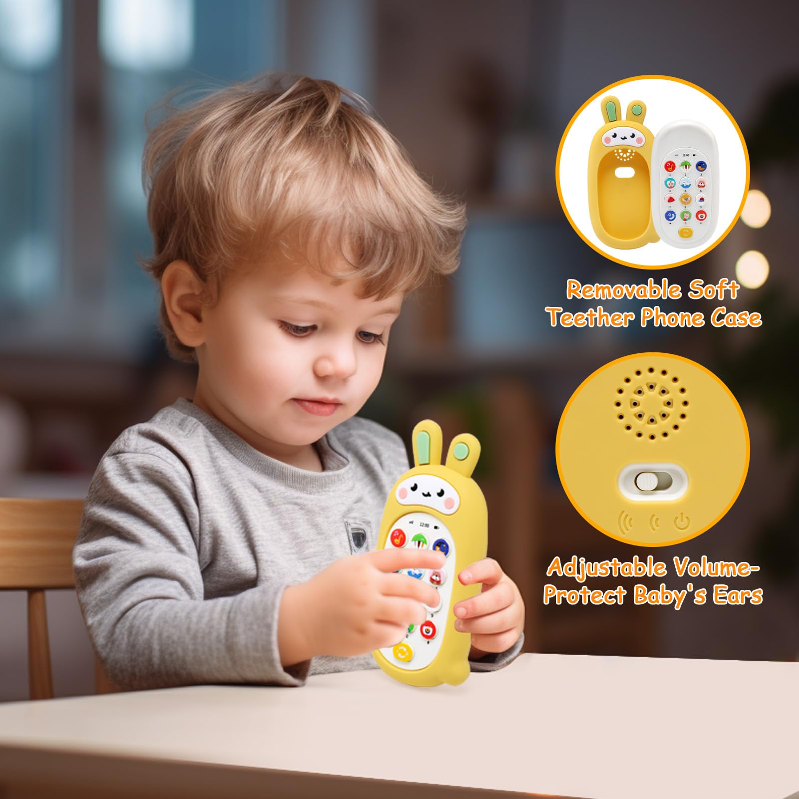 • L'étui à jouets pour téléphones pour bébés est fait de silicone et de matières plastiques non toxiques et résistants à l'usure. Le peigne mordant est amovible et est bouilli dans de l'eau à haute température. Sûr au toucher et aux morsures, non toxique, inoffensif et non irritant, son utilisation est donc sans danger pour vos enfants. (L'emballage n'inclut pas de batterie)