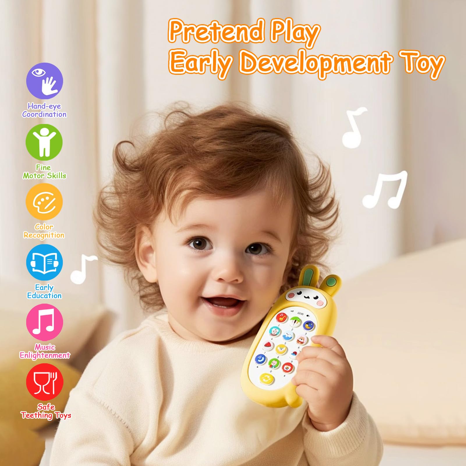 • Le jouet sonore pour bébé est un excellent cadeau pour les bébés âgés de 6 à 24 mois . Ce n'est pas seulement un jouet pour téléphone portable avec de vrais boutons, mais peut également être utilisé comme jouet de berceuse, jouet d'éducation précoce et jouet. Il contribue à la promotion de la motricité fine chez les jeunes enfants, les encourage à apprendre les chiffres, les animaux, la météo et les véhicules, et favorise l'utilisation du langage et le développement du langage lorsque les jeunes enfants imitent les appels téléphoniques des autres.